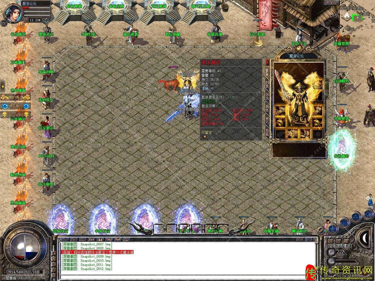 装备介绍:战神系列、星王系列、御天系列装备全爆,所有爆率全开,一切靠打,区区必爆剑甲,比人品的时候来啦。