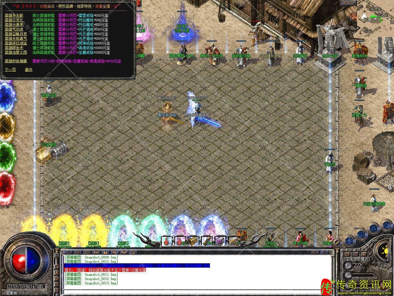 版本介绍:新增护体神盾高级技能,护体神盾需要书页10张+战神戒指+圣魔戒指+真魂戒指+3000元宝可合成。
