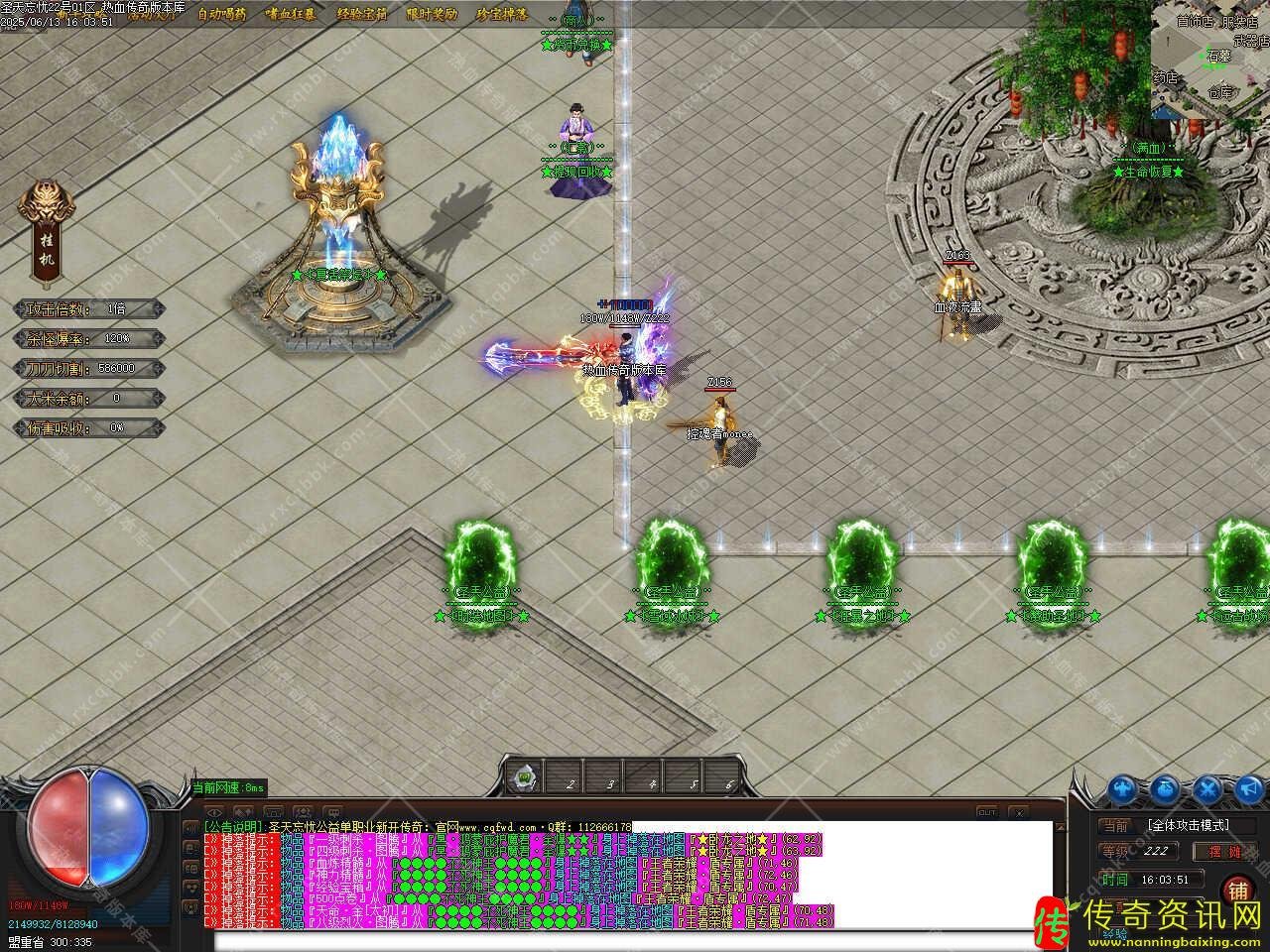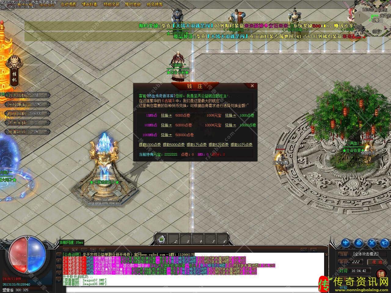 特色功能:玩家在测试区回收的元宝+点卷,正式开区可以获得50%元宝,玩家在测试区回收的元宝+点卷,可以通过测试回收自动记录,等正式开区用相同的账号领取测试区奖励即可。