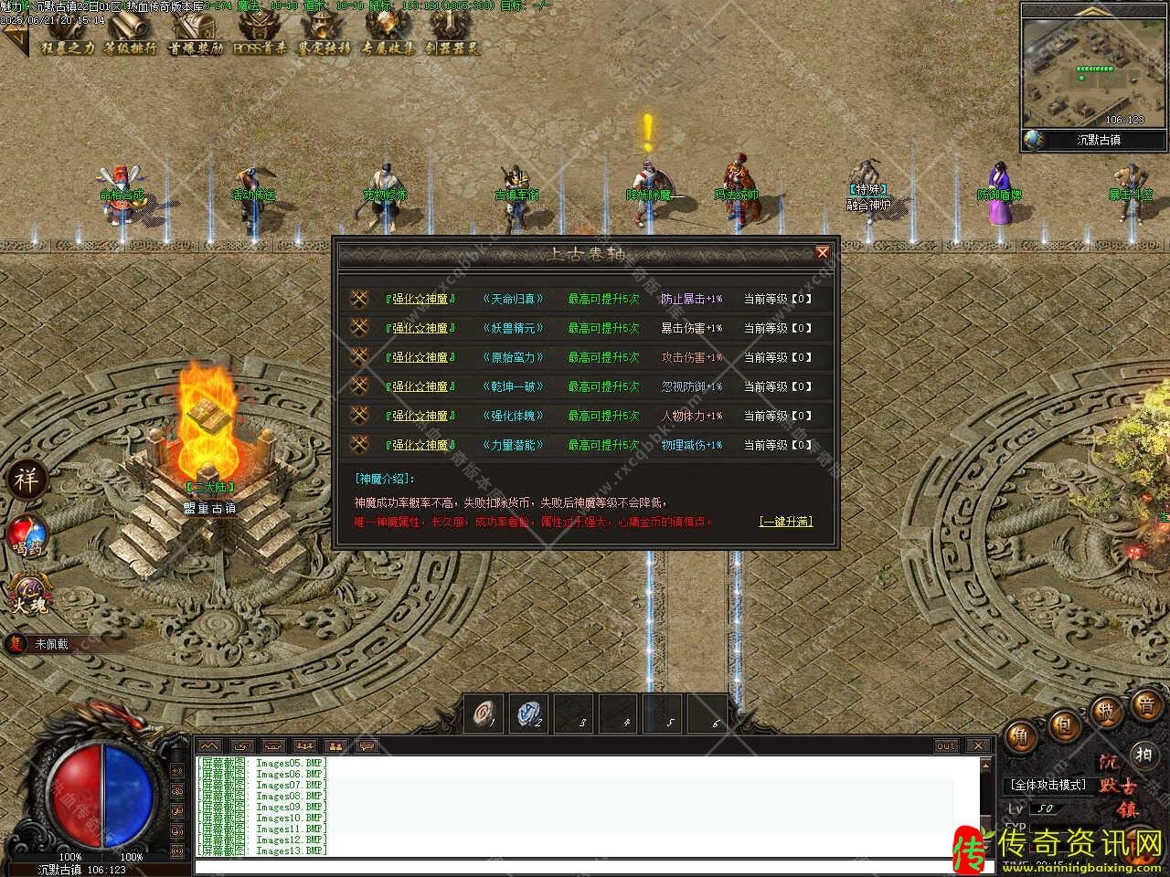 四、新增强化神魔功能,神魔成功率概率不高,失败扣除货币,失败后神魔等级不会降低,唯一神魔属性,长久服,成功率看人品,属性过于强大,舍不得金币的请慎点,如果点击次数满(500)次还未点满者可用(28888)元宝直接升满。