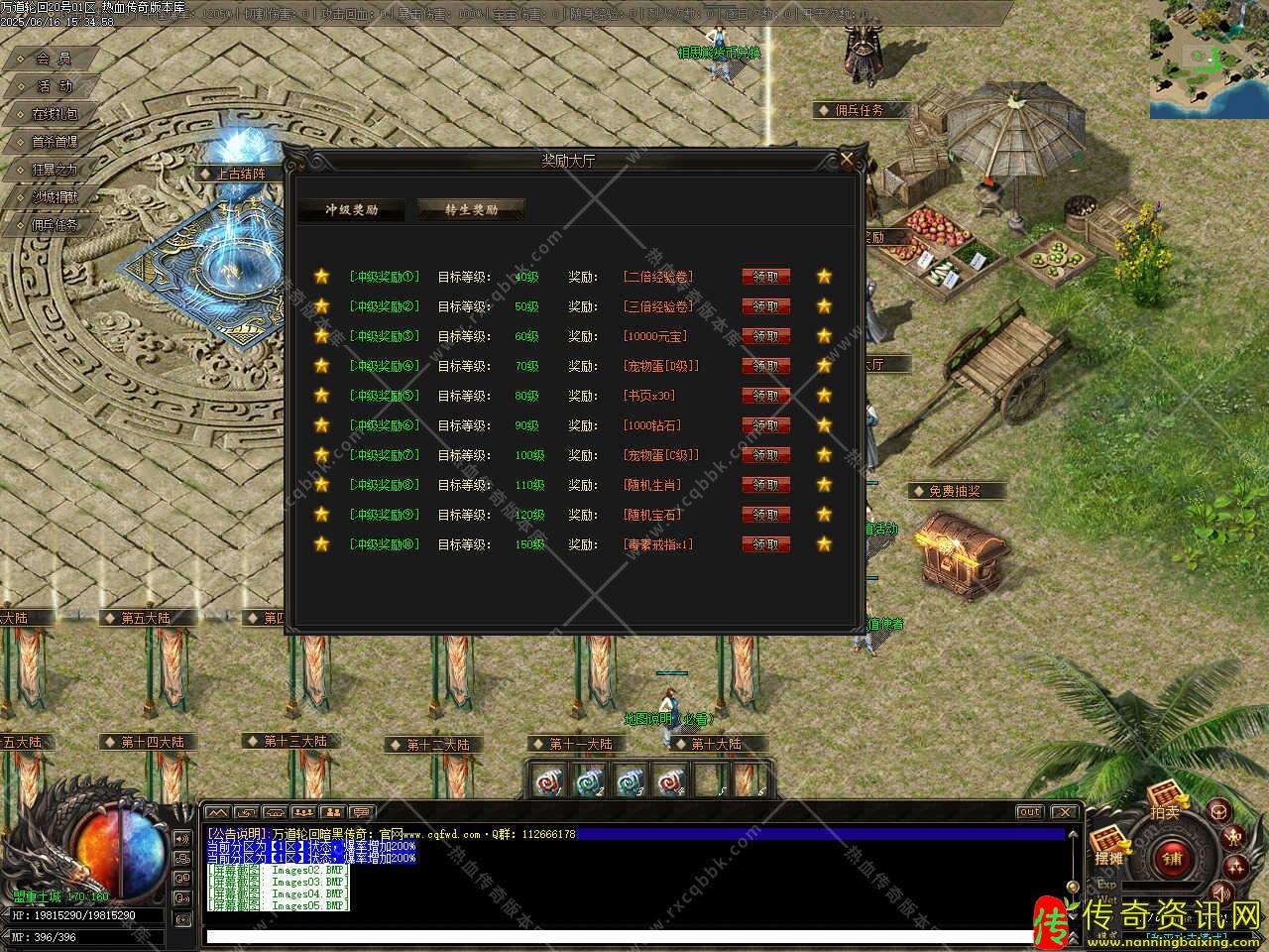 五、土城右上角NPC(材料合成)处,用元宝买二倍经验卷,三个二倍合一个三倍,三个三倍合一个五倍,吃上五倍打怪,前期想升级快把经验勋章升到十级升级就够快了,珍宝商人处卖的经验卷不要买,浪费钻石。