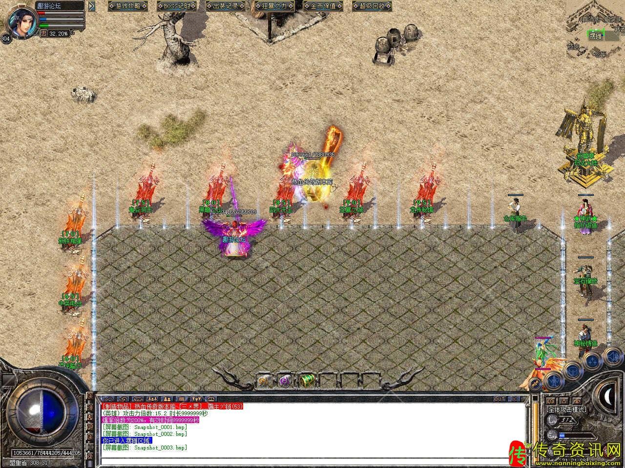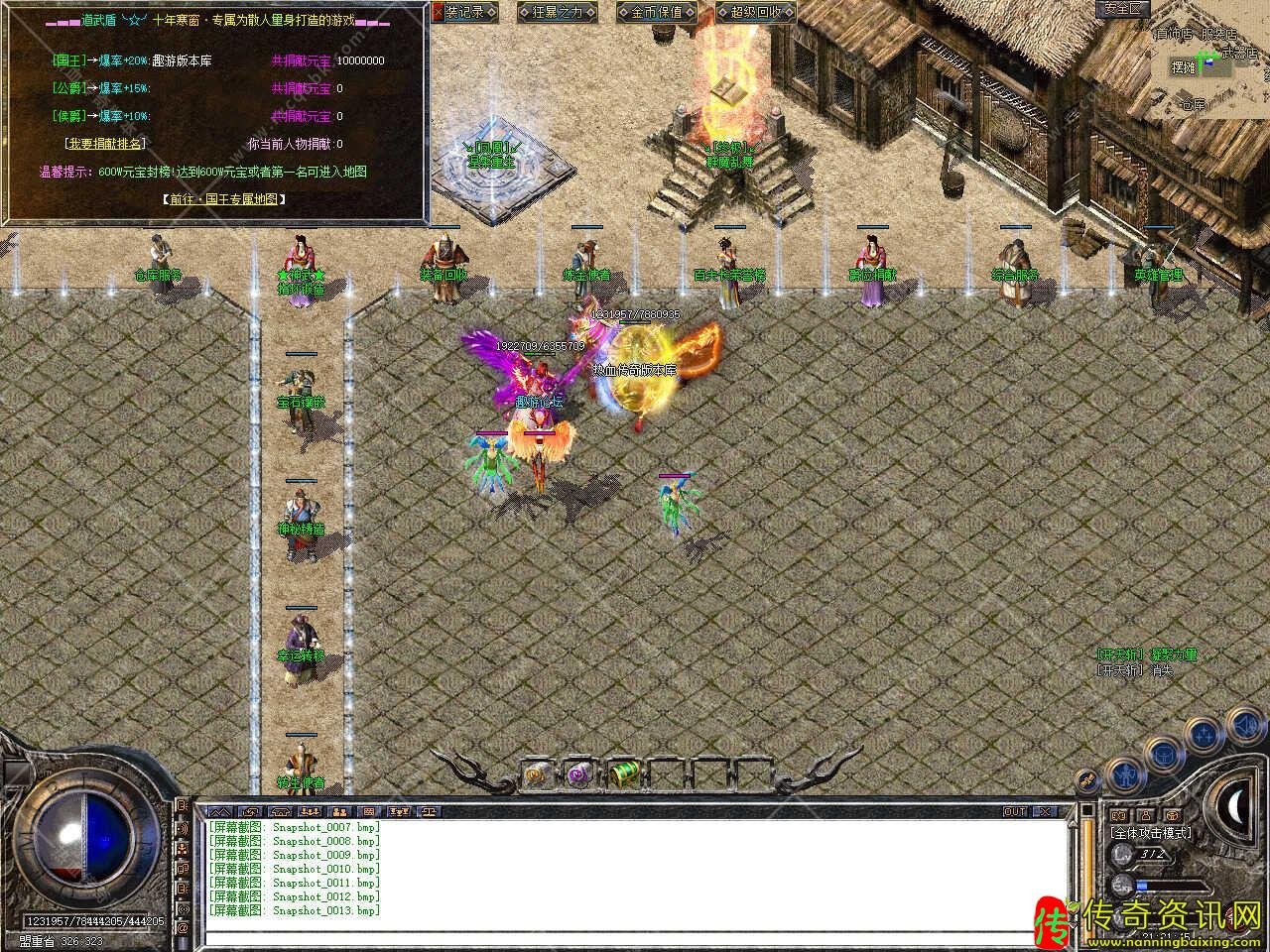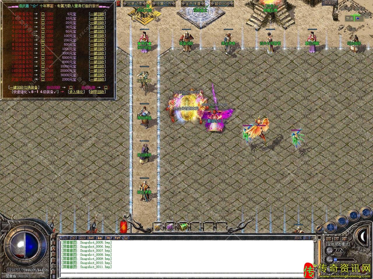 四、新增副本玩法,有天梯副本、屠魔殿副本、藏经阁副本,刷新各大地图BOSS,爆一切装备,触发凤凰副本,用20万元宝进入,里面爆率3倍,运气好爆一切。
