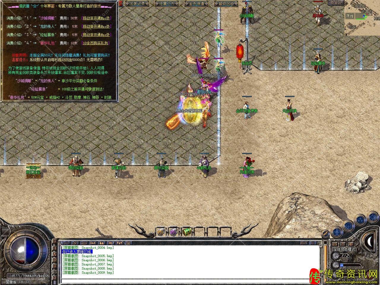 二、新人免费学习三职业魔法盾、免费刀刀淬毒、免费永久在线回收、免费自助元宝转区、免费BOSS计时器、免费刀刀切割1000点、免费赠送召唤"火神"随宠。