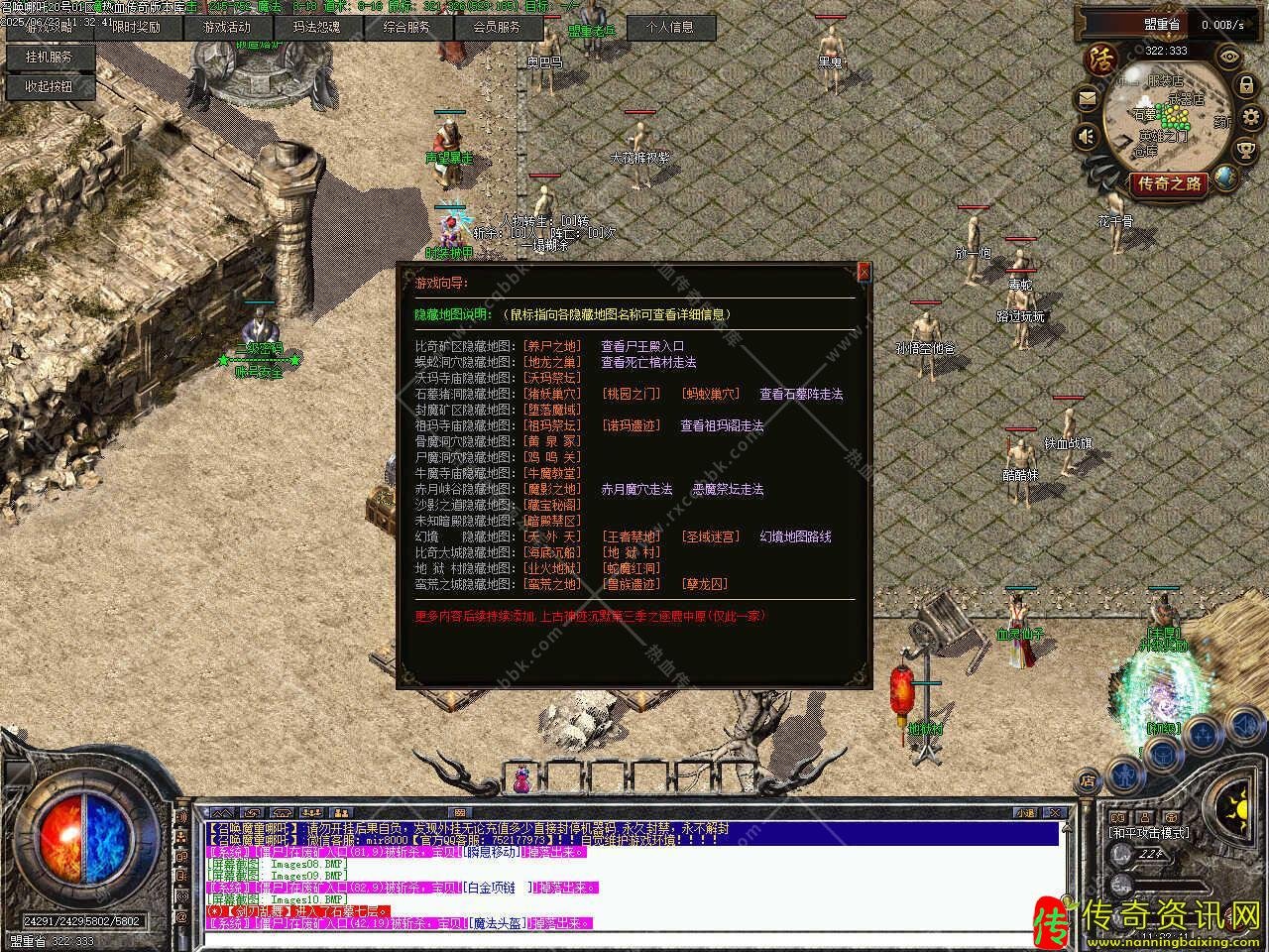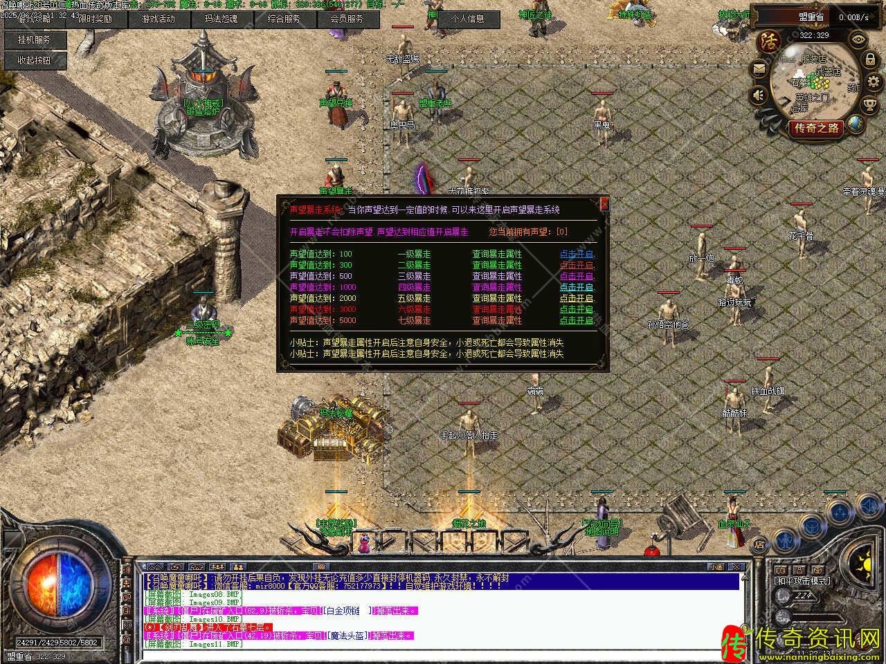 六、新增蛮荒秘藏地图,进入蛮荒秘藏需要消耗5点秘宝值,同时需要等级达到63级,秘宝值可通过藏宝图挖宝获得,普通藏宝图挖宝获得1点秘宝值,高级藏宝图挖宝获得3点秘宝值,可消耗秘宝值召唤不同的BOSS进行挑战,越高级的BOSS消耗的秘宝值越高,此地图为公共地图,所有人均可进入,召唤BOSS时注意周围有没其它玩家。