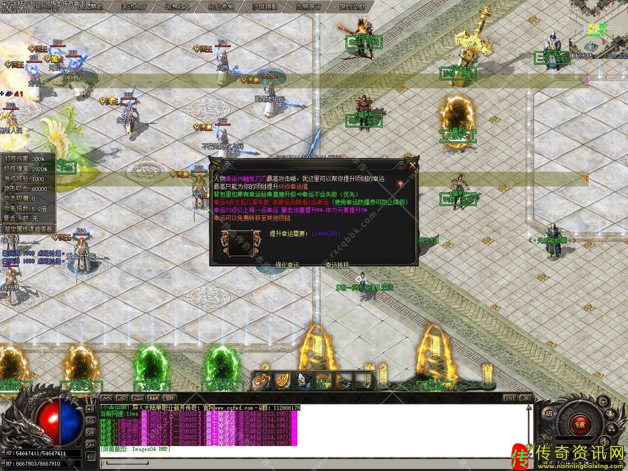六、添加无尽深渊地图,此地图刷新专属BOSS、超神级BOSS等,分别10分钟、15分钟、20分钟、30分钟、60分钟刷新一次,所有BOSS怪物均有几率爆出终极装备,需要等级到达500级,每次消耗王者碎片58个。