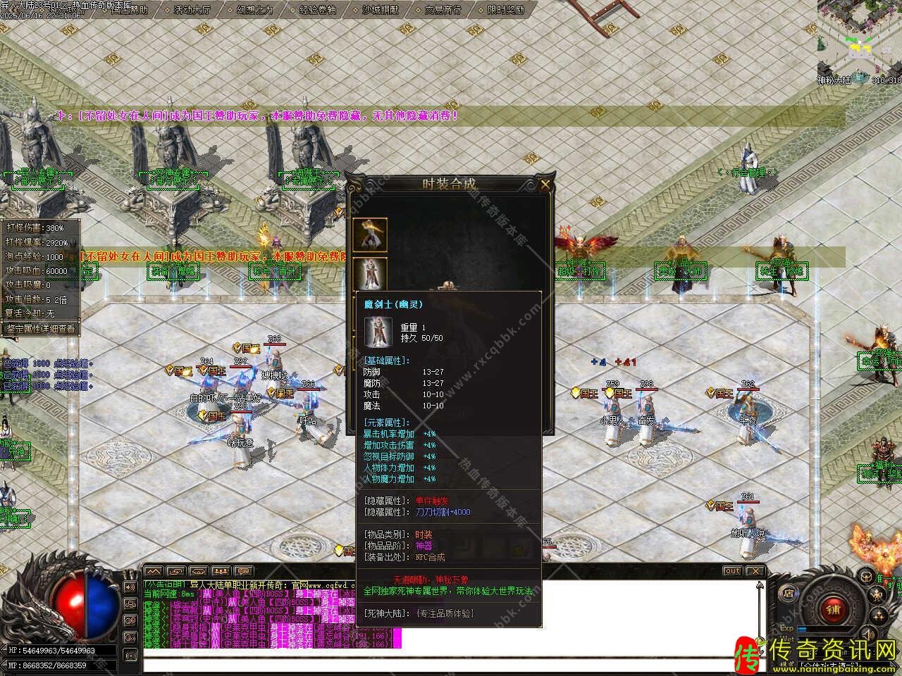 四、此服务端等级提高到999级,本次更新等级难度降低,不在强调等级得重要性。装备BUFF大幅度优化,所有属性BUFF全部重做,不会再有火影装备秒掉其它装备套的问题,PK更均衡。