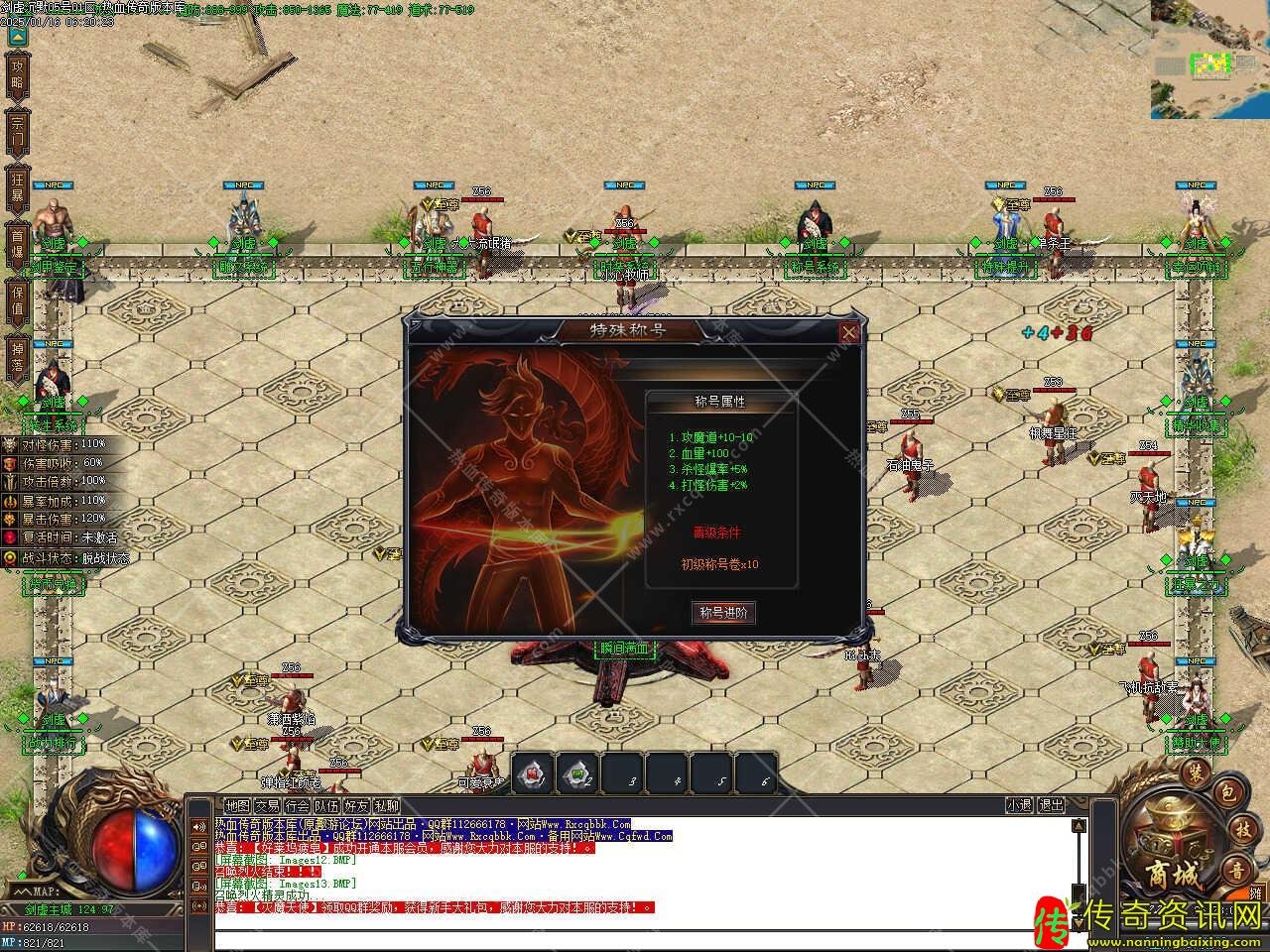 版本介绍:新增武器衣服升级功能,武器跟衣服可以升级,需要20000元宝+神器碎片5个即可,随机获得攻魔道(0-500)加成。