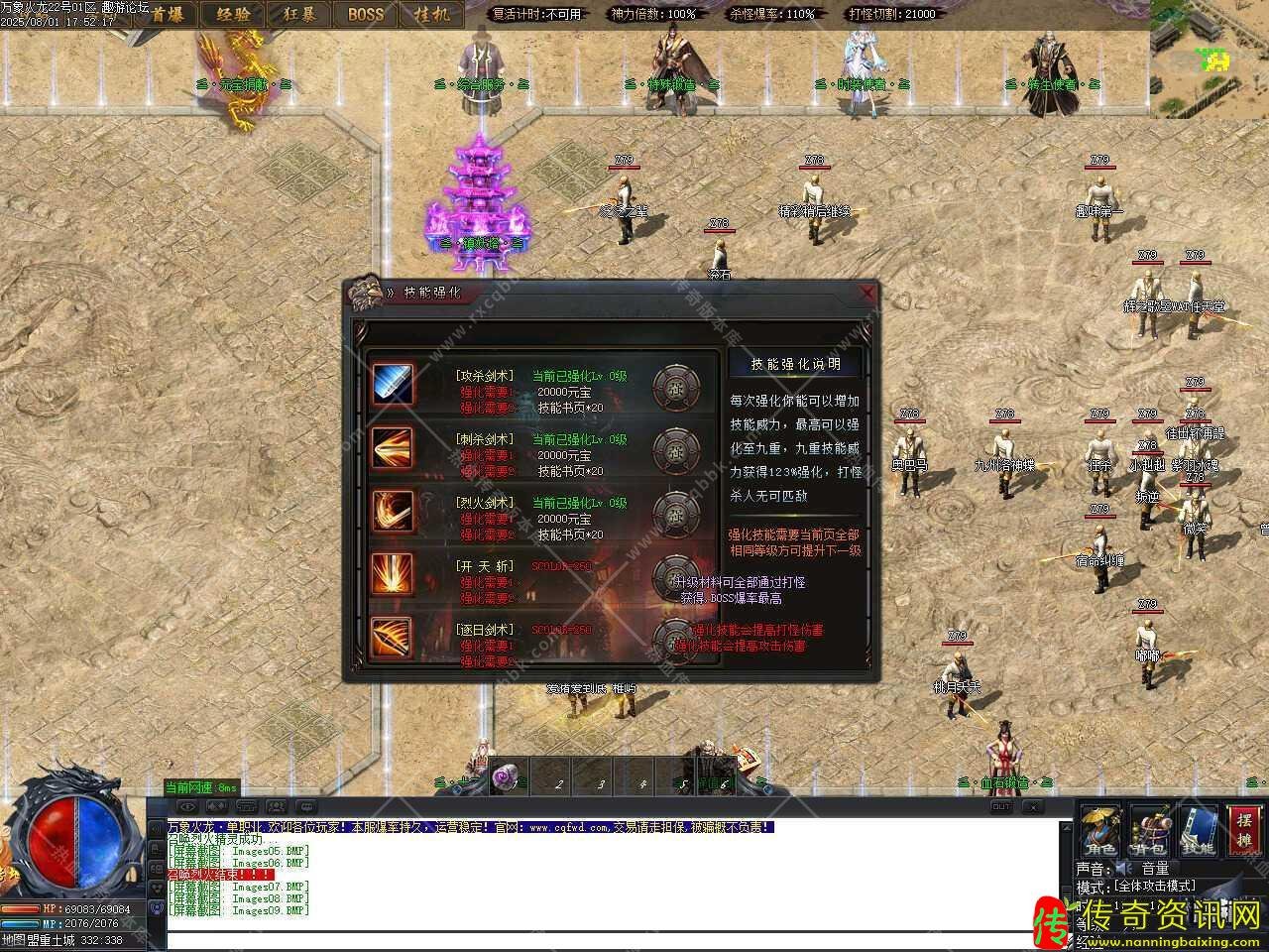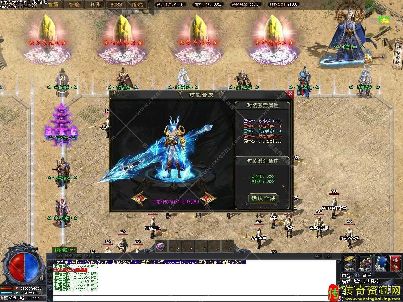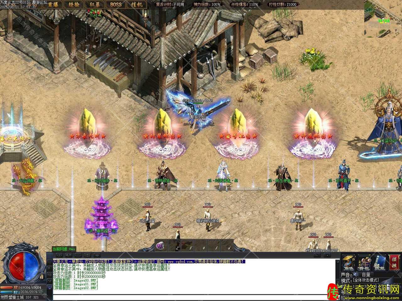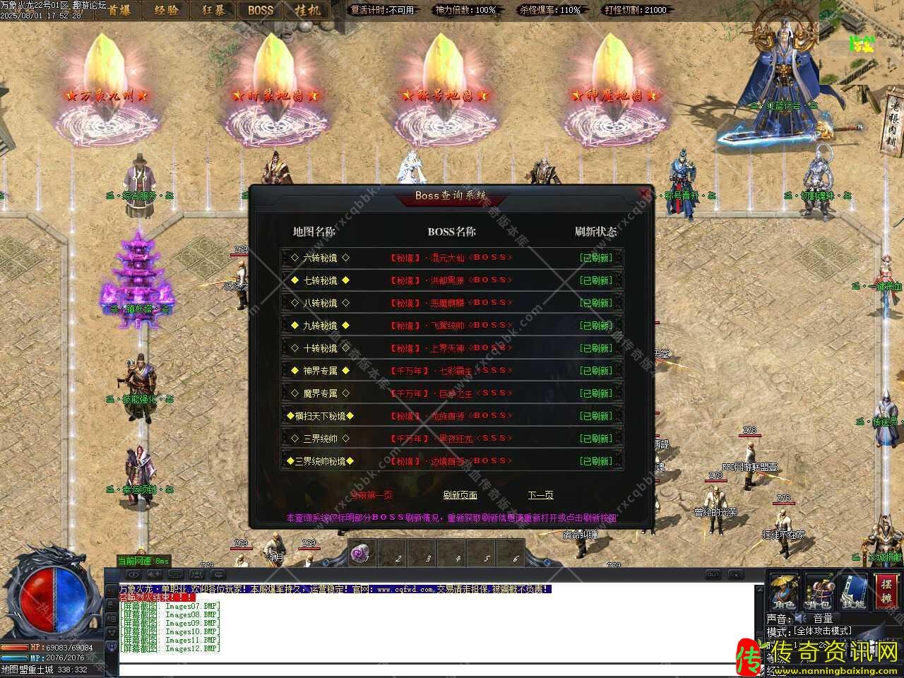 三、新增战场活动,地图内刷新全服BOSS,开启时间为第二天18点,固定刷新〝旭日·BOSS〞,必爆终极首饰一件,进入此活动地图之后所有玩家强制〖神秘人模式,全体攻击模式,简装,限时开启8小时。