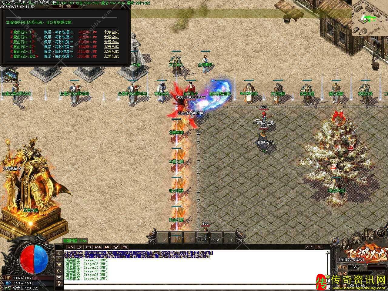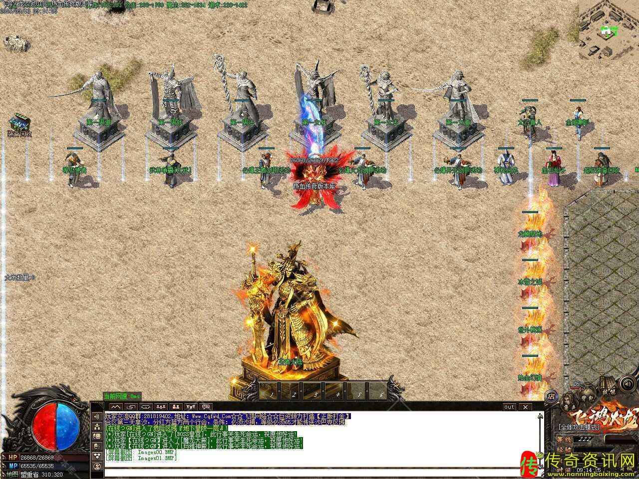 三、添加九九重天活动,开区3小时后开启2小时,活动时间截止即为结束,玩家消耗1大米随机进入1-100层,需要开启狂暴,沙捐,每次进入增进100W经验,地图怪物金刚石爆率高,100层刷新世界BOSS,必出龙腾装备很大几率出飞鸿系列装备。