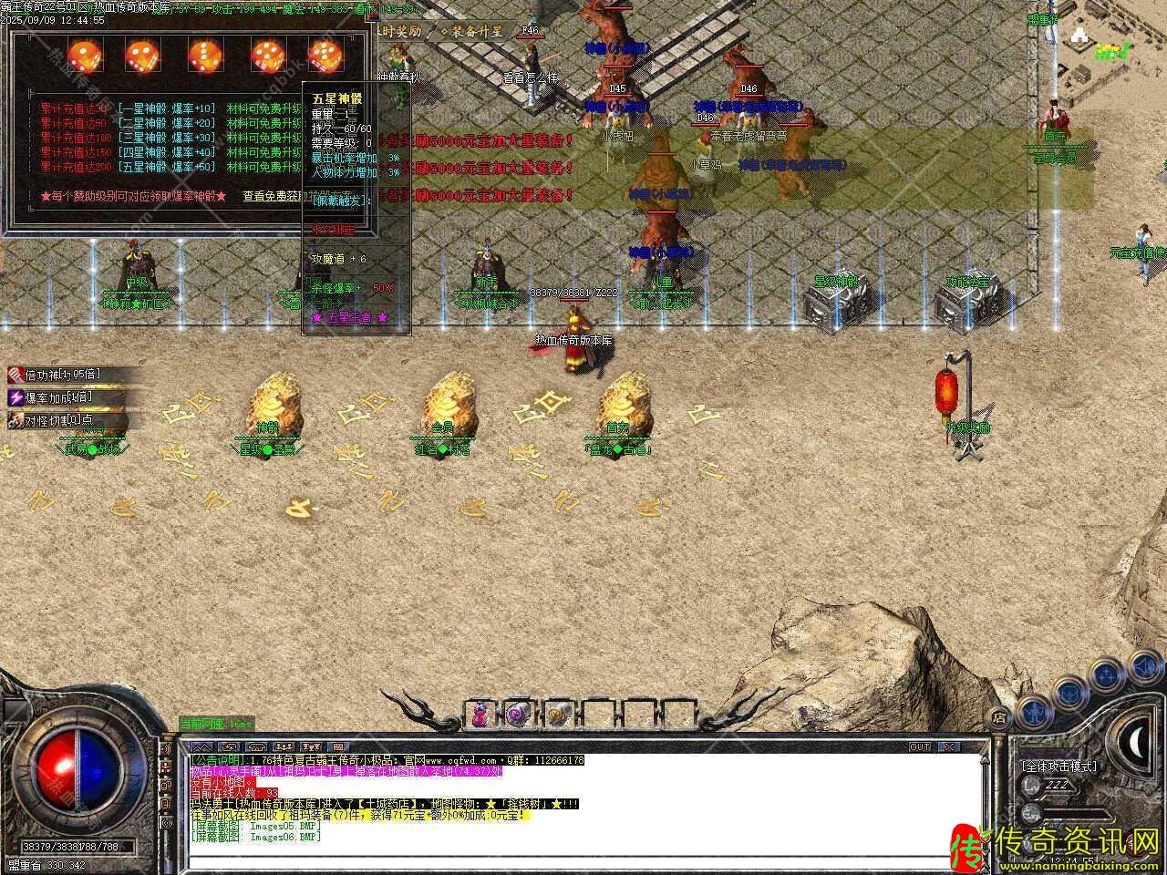 三、首饰装备+5星顶级,无法合成,只能靠打,所有30000血以上怪均有几率出雷炎玛法以上装备 血越多爆的越好!