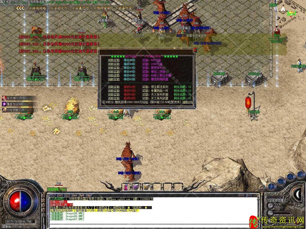 五、此版本中地图众多,进游戏查看,唯一一个会员赞助地图[开通新春礼包进入],前期发展力推,地图都是属于大型地图,各地图怪物充足,15分中一120分中刷新,终极BOSS两个小时刷新,点上一根烟,享受刷怪的乐趣吧。