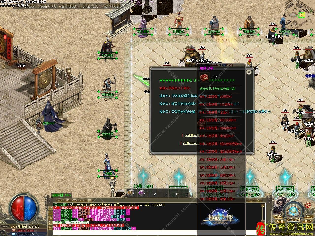 七、新增冰宫乐园地图,刷新冰宫甲虫、冰宫雪人、冰宫战士、冰宫神将等普通怪物,BOSS有冰宫神虎、冰宫教主、冰宫魔王,特殊BOSS有福利BOSS、BOSS60分钟刷新一次,特殊BOSS300分钟刷新一次,可爆帝王系列、凤舞系列、神武系列、特殊首饰等装备,需要等级85级和金币50万进入,会员可免费进入。