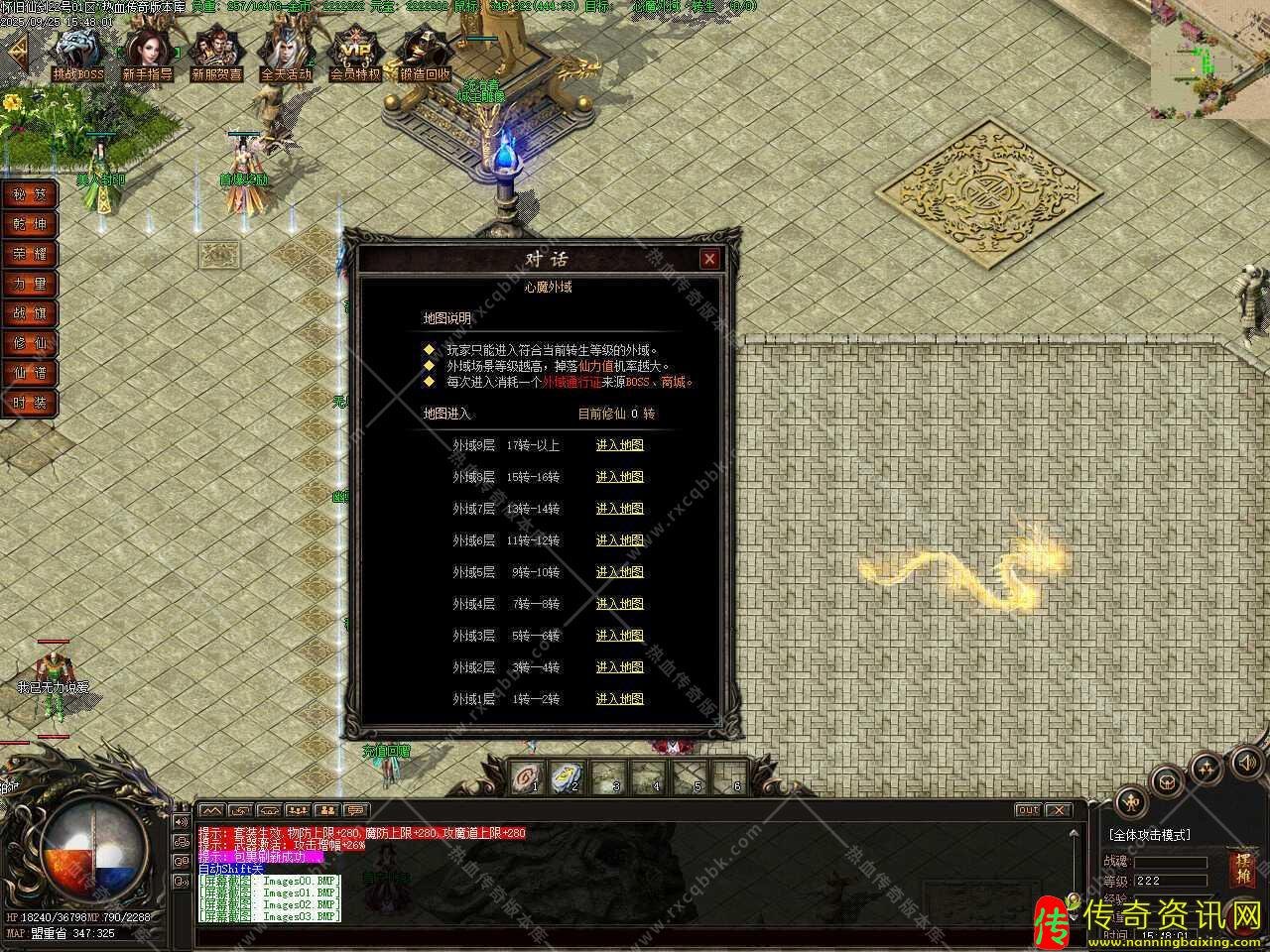 三、添加生肖功能,生肖系统分十二张地图,BOSS爆相应生肖,各地图BOSS爆出生肖传送证,双击选择固定进入或者消耗2000元宝随机进入此地图中,BOSS每30分钟刷新,注:生肖仙炼之后激活BUFF属性,越高级生肖BUFF越厉害。