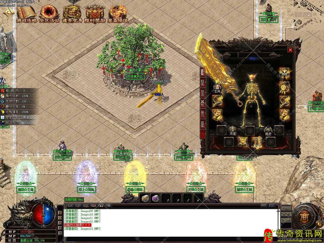 八、添加冰封遗迹等级地图,地图刷新怪物洪荒30分钟,史诗30分钟,世界30分钟,传说远古60分钟,装备随便爆,需要人物等级115级,金币5万才可以进入此地图。