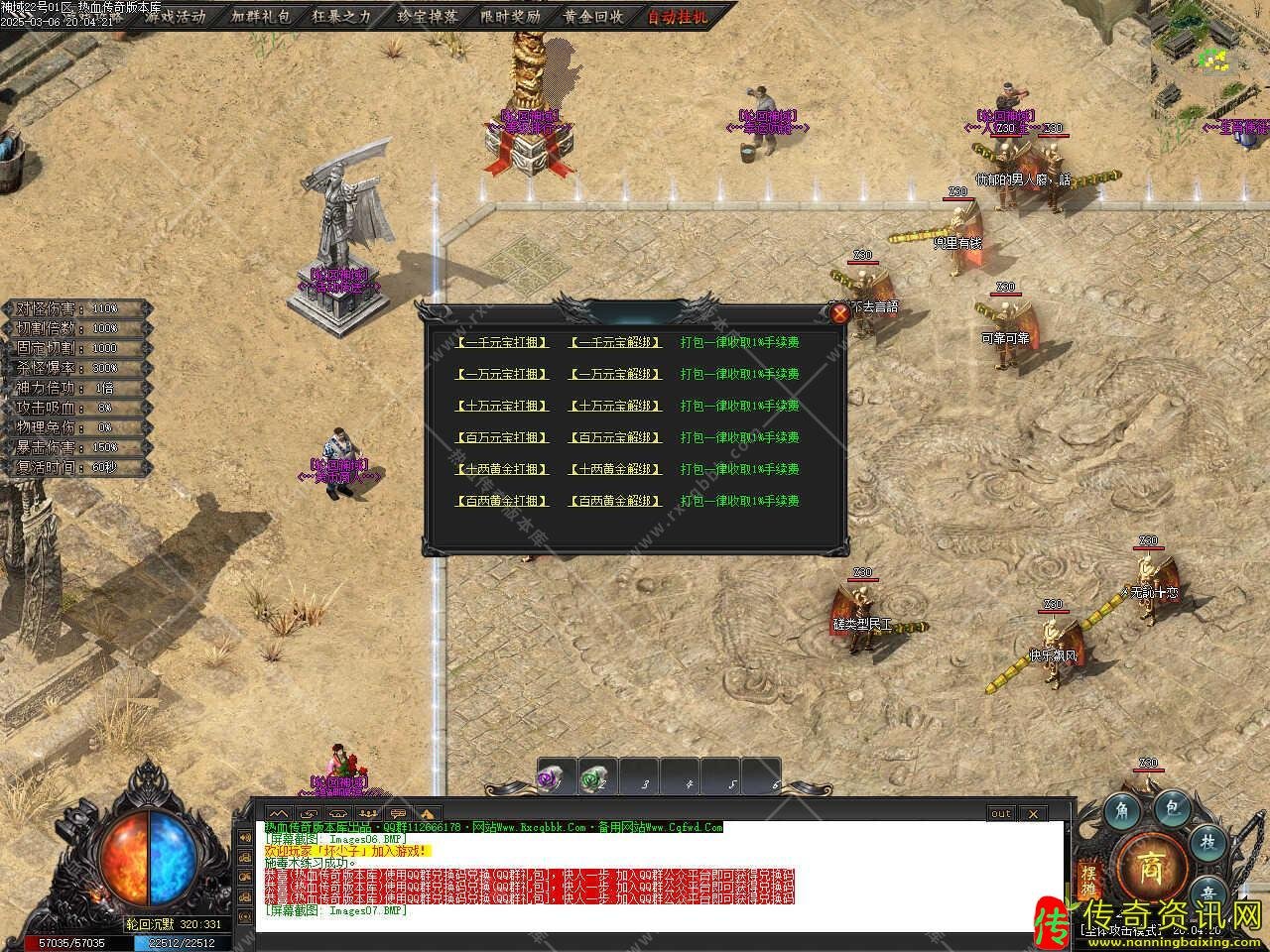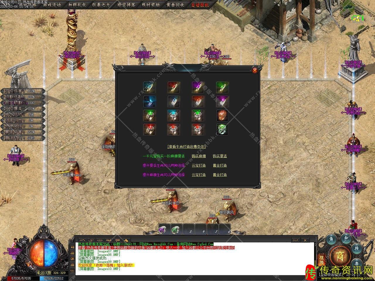 版本介绍:上线后先领回馈,沙捐和狂暴 ,然后把定身、复活做到8级,左下角把锦鲤赐福点了,转生下2大地图。在二大地图海角村把回馈礼包领下,没满回馈的可以做面巾, 优先做打野刀 ,称号点了, 做技能生肖,然后去二大地图帝皇城把时空沙漏合下,做时装,做定身复活max 。