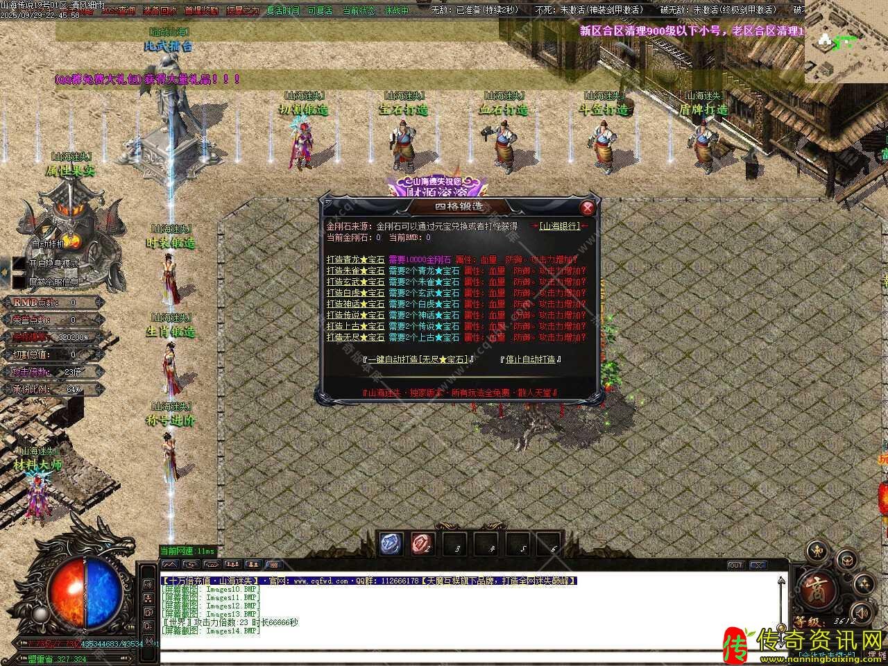 三、新增宝石合成功能,根据自身材料自动购买初级材料,自动打造,消耗与手动点击一样,请背包保持最少10个以上空格,否则无法自动打造,打造所需金刚石可以通过元宝兑换或者打怪获得。