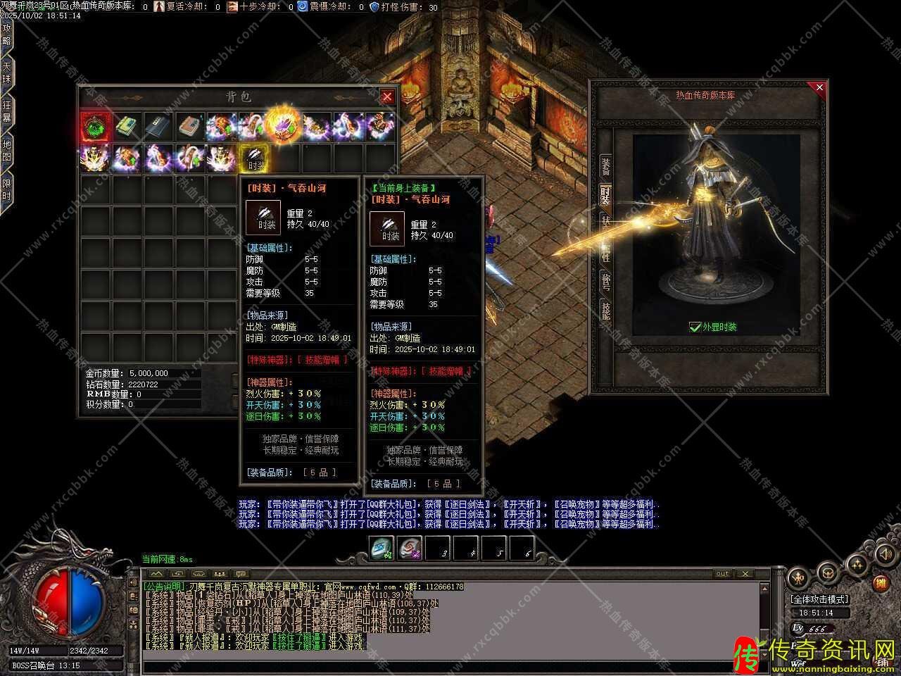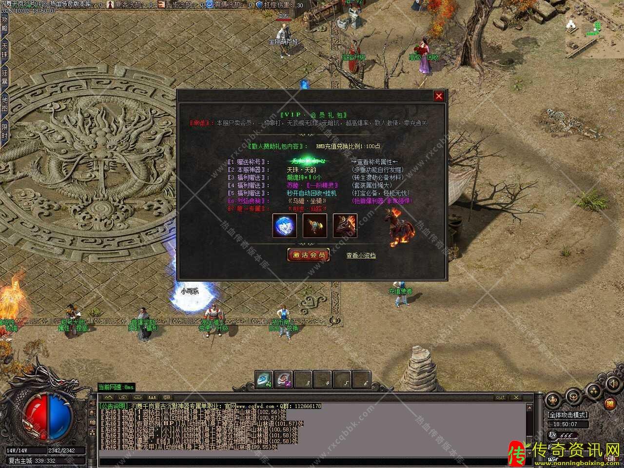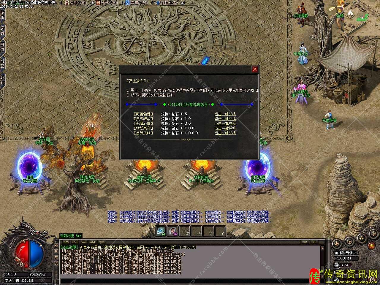 八、添加召唤阵台,在那里可以召唤BOSS,任意怪物都有几率掉落BOSS召唤卷,集齐25张即可召唤BOSS,散人再也不用担心打不到BOSS,满满的福利,用点时间可获得一切,注意:BOSS召唤可能会被其他玩家争抢,建议做好万全准备再进行召唤。