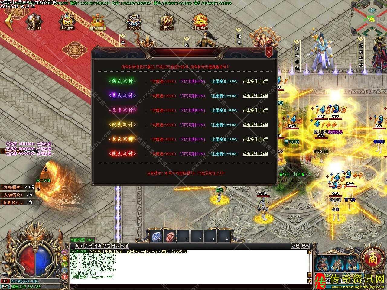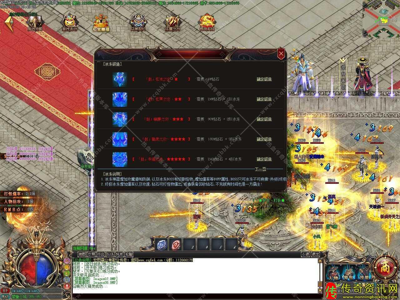 四、此传奇版本元宝可在土城左边升级切割,钻石可提升称号以及打怪冰冻神器,随处泡点到500级后,每个怪物必爆等级丹,可在土城正上方提升等级,可进等级地图。