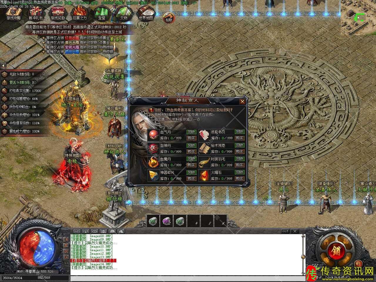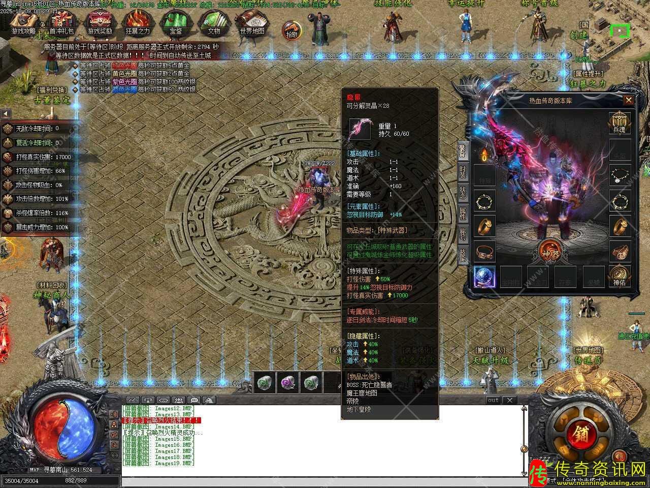 三、添加专属觉醒NPC,觉醒有一定成功几率,失败只扣除黄金+材料,操作时请将需要觉醒的装备放入NPC下面框内,系统会根据您放入的专属装备,显示需要觉醒的条件和觉醒后装备属性。