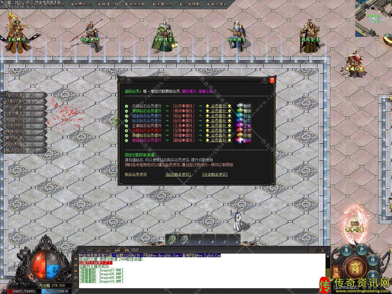 版本介绍:此传奇版本属性平衡。材料等货币游戏自由兑换,称号、时装、装备加星,都可以使用超圣魔晶提升。
