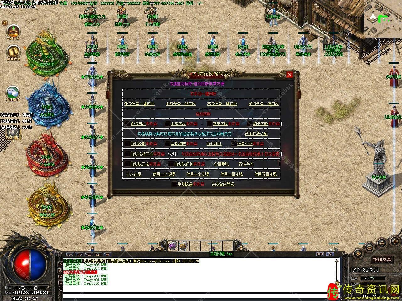 版本介绍:新增狂暴功能,开启狂暴需要50万元宝,开启狂暴状态人物头顶会有专属图标,游戏小退、大退、被怪打掉的情况下狂暴不会消失,开启获得0.2倍攻击+爆率+5%+暴击+10%专属地图。