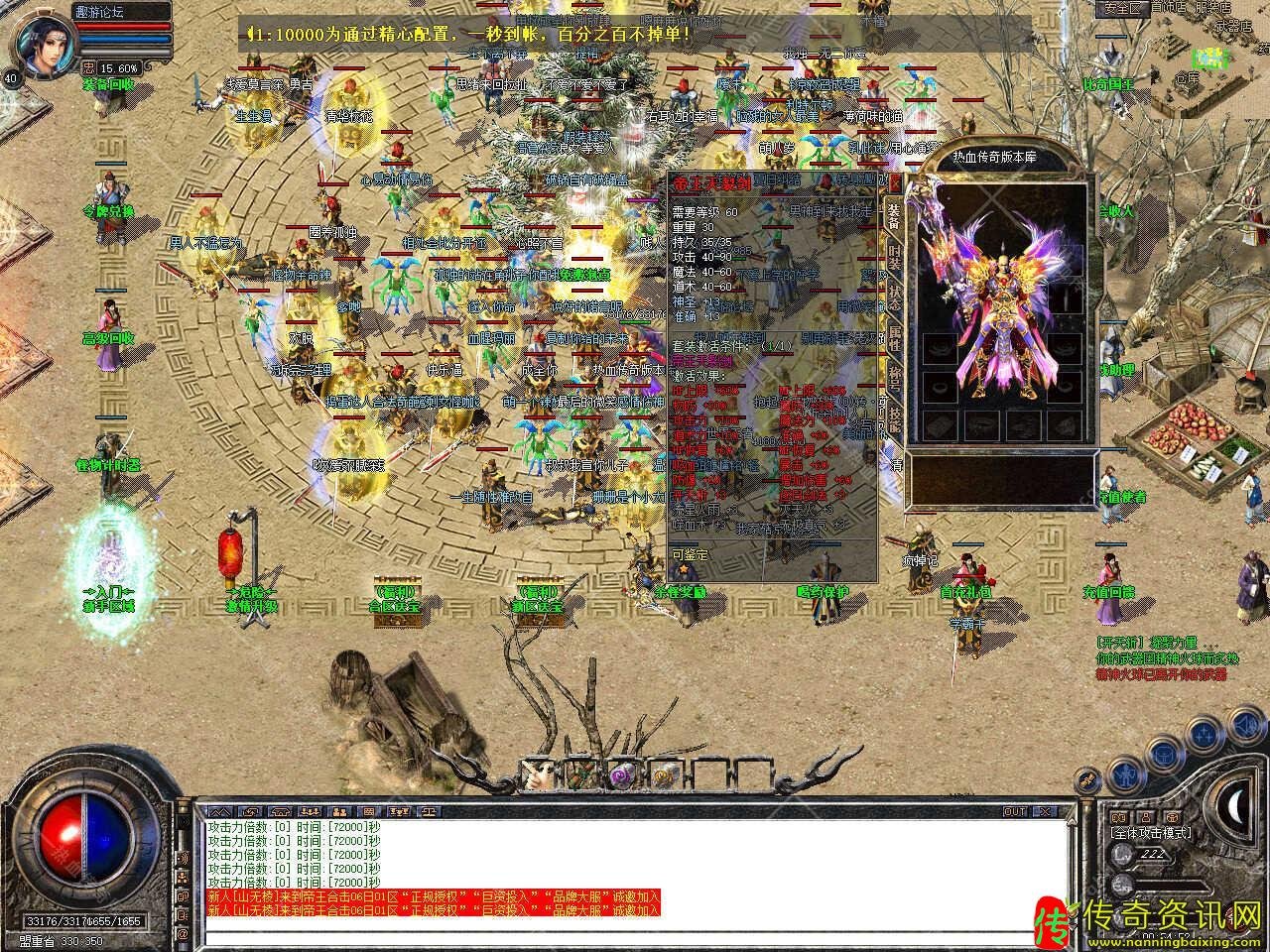 1 80帝王合击星王+4天神版传奇服务端传奇私服网站假人光柱 admin 2025年10月18日 11:51 88 0 版本介绍:此传奇私服网站服务端版本采用的是新BLUE引擎SQL版制作,客户端+补丁13.30GB,测试客户端为18周年传奇客户端,游戏兑换码:888888,版本带有假人功能,把开区覆盖\\正式区下的文件夹手动复制到Mirserver文件夹下面替换即可。 版本介绍:独家1 80星王+ 4经典回归版,2024年倾情巨献,教主爆一切,散人梦开始的地方。 版本介绍:元宝比例1:10000,无任何比例待遇,冲200可自动转区100+包裹内元宝数量,一切为散人而着想。 版本介绍:装备顺序为武魂套一精灵套(星王套属性)一无敌套帝王套,火神套一天神终极,全部靠打。 版本介绍:帝王合击新增游戏各种福利活动,高级剑甲特殊四格区区送不停,教主光柱爆不停。 版本介绍:新区开放第三天12:00合区,晚上20点统一攻沙,沙巴克奖励查看游戏NPC了解,欢迎大家入驻体验。 标签: #传奇sf网站 #假人 #光柱 #天神 #帝王 #服务端 #引擎 #传奇私服网站