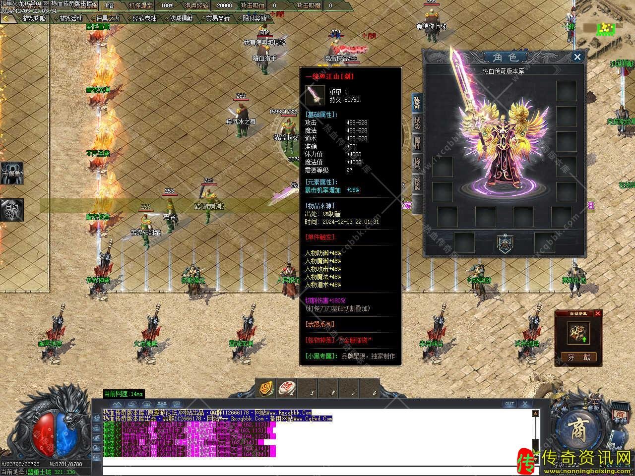 版本介绍:本服所有装备都加专属属性,和刀刀切割伤害,装备等级越高,切割伤害越高,攻击防御越高。