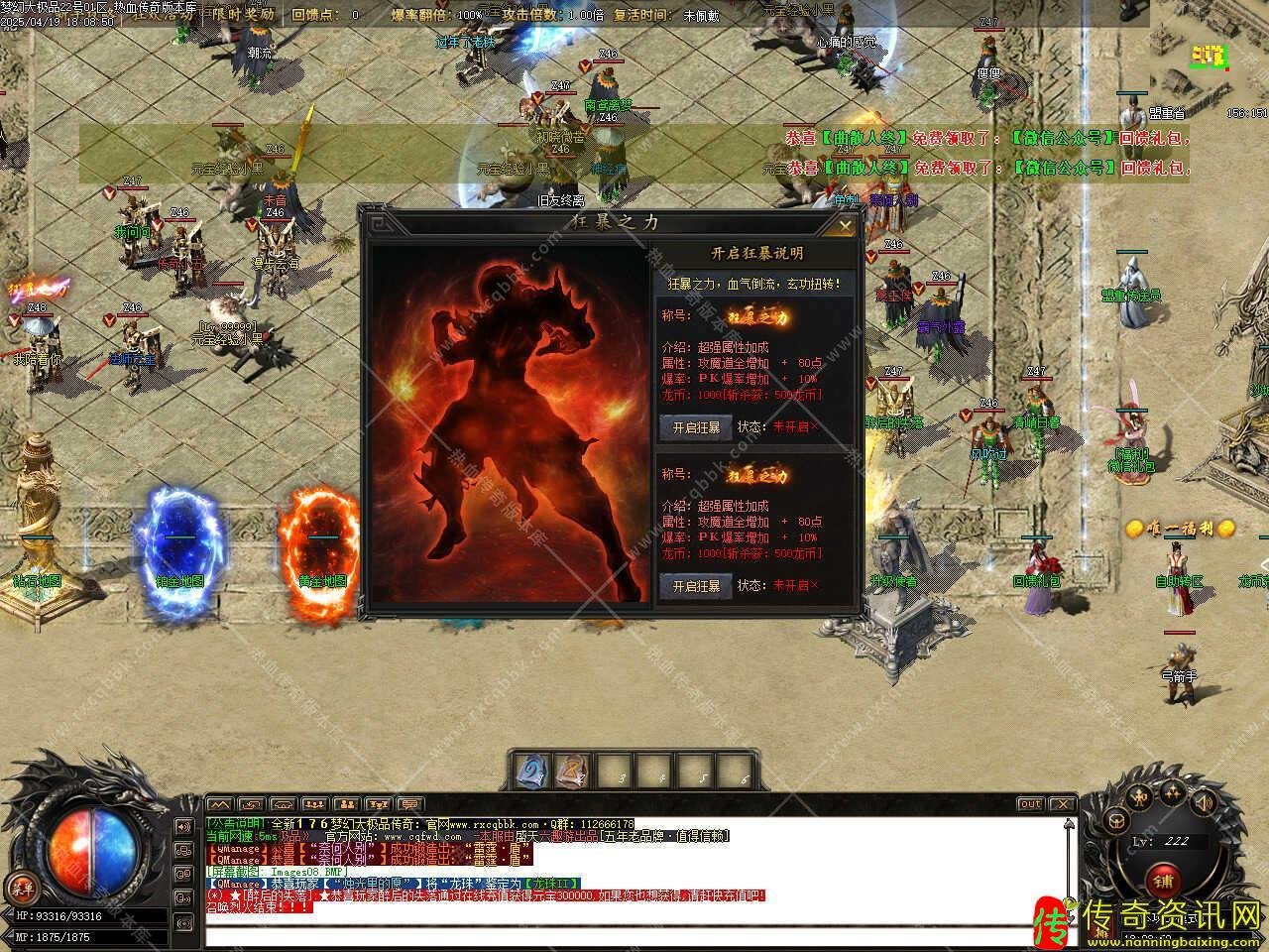 版本介绍:新增超级称号功能,称号属性1、忽视防御+50%,伤害减免+20%,超强元素属性;2、爆率增加1000%,刀刀切割怪物30000HP,3、BUFF几率+10%;4、额外赠送100枚风云神石+金盒*20。