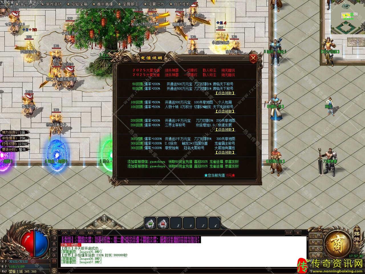 版本介绍:本服无转区,无比例,无待遇,福利地图,怪永远刷不完,无限怪地图打元宝材料首选,每天0.00刷新全套神器怪物爆神器装备,任何比例待遇问题不回复,感谢大家的信赖与支持。