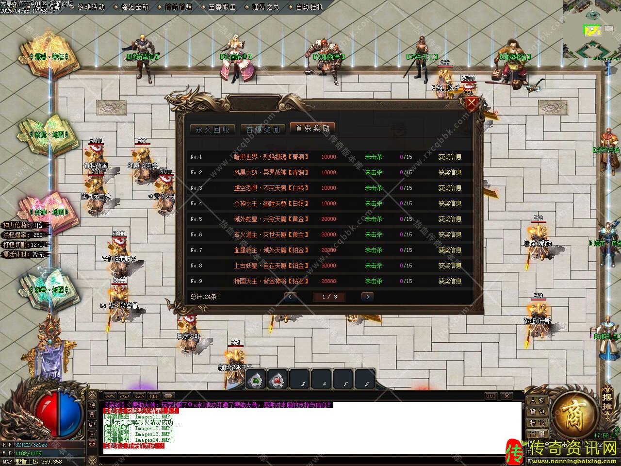 版本介绍:此传奇版本中任何3000万HP以上怪物都出终极,全服白名字怪物见到不要放过,HP少一样出终极,神器怪爆神器装备不要放过,散人多多打怪一定可以逆袭!