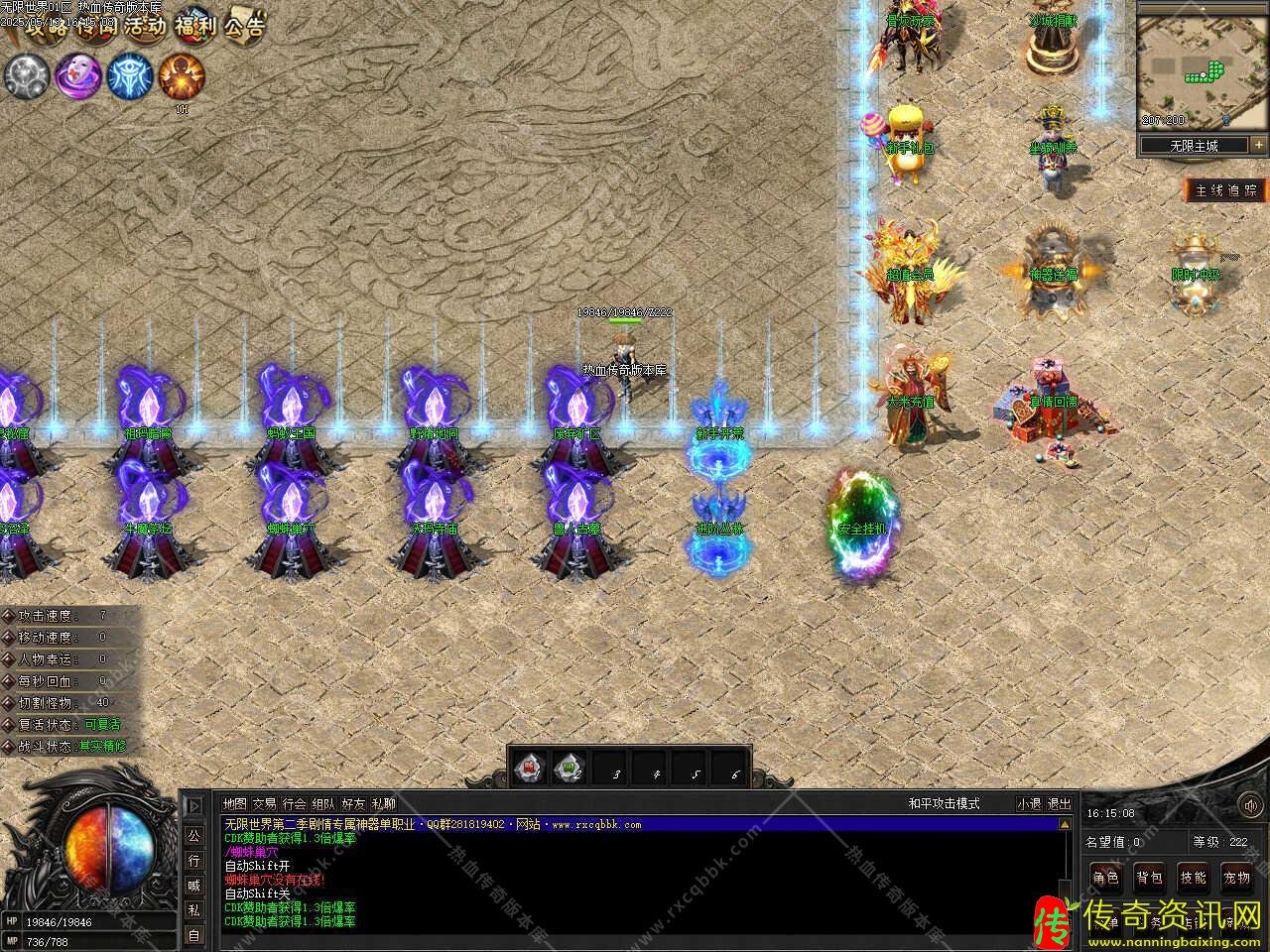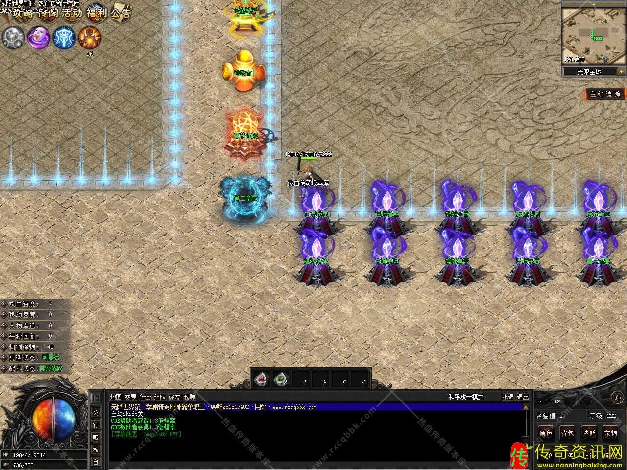 版本介绍:玩家上线后可先扛怪特殊四件套,接着升转生和等级,名望值多就点点称号,另外打到奇迹宝箱一定要开哦,要提升发展效率,可尽快给装备上铭文。
