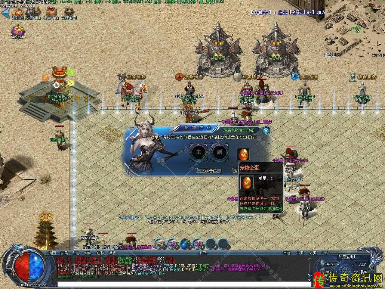 版本介绍:新手上线之后可点击礼包中心加入QQ交流群,领取宝宝[半兽勇士],小地图可以点击拖动哦!点击寻路。