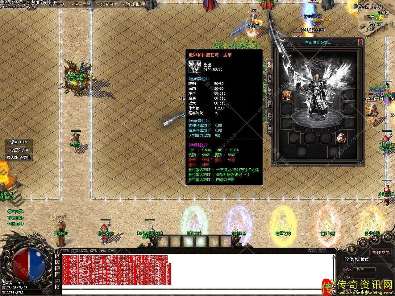 版本介绍:新增装备洗**能,本服熔炼神石所有怪物有几率掉落!罕见材料,用1个熔炼神石+8888金刚石,随机强化装备,攻魔道属性最高加+80。
