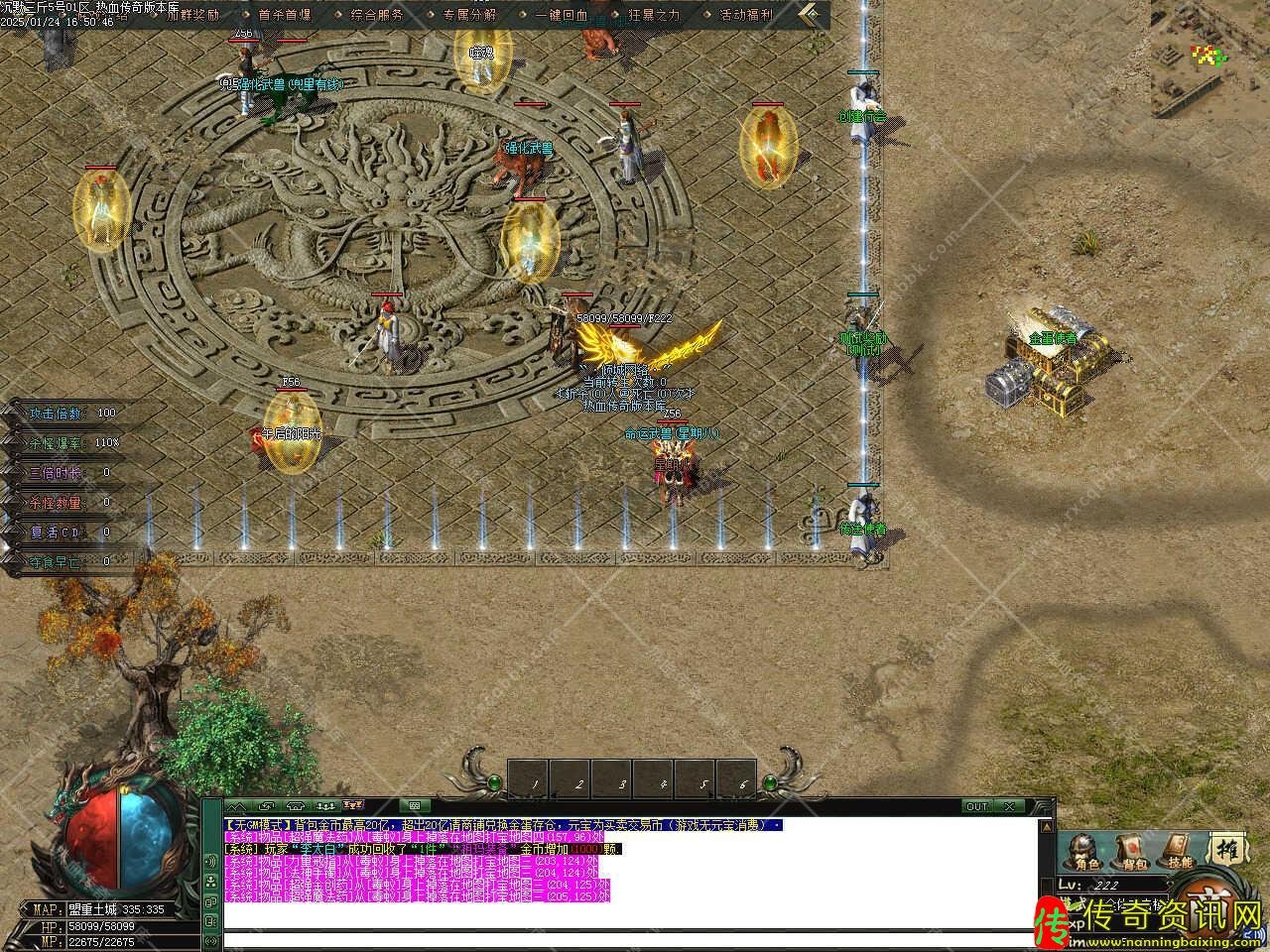版本介绍:上线玩道士开个狂暴召唤4个宝宝直接开干就行!打到金币可出给其它玩家,项链在上方按钮综合服务里面点,土豪可直接5亿金币直接制作运3,拥有1.2倍攻击+1.6倍爆率。