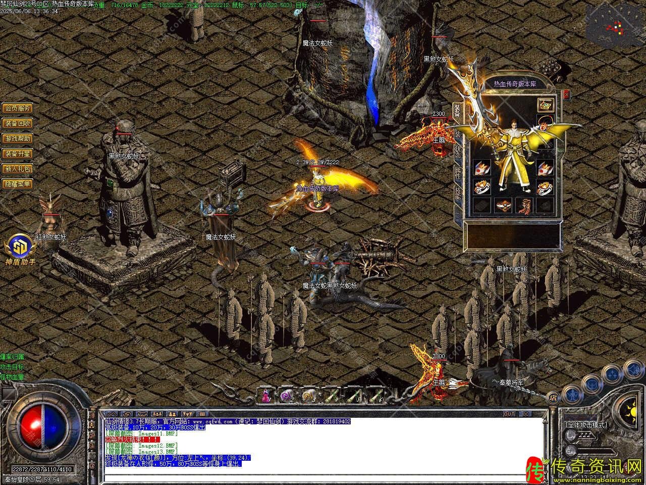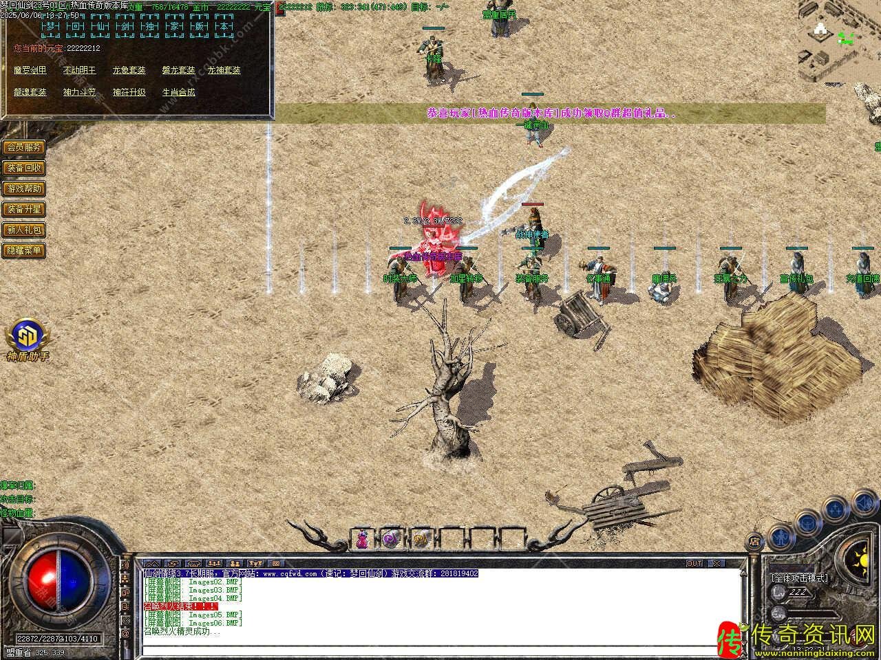 三、新增会员命令/@会员 ,即可享受强大的会员功能服务.增加新命令/@帮助,可快捷回城,高级装备,10万,20万,30万BOSS爆出,终极装备在人形怪,50万,80万BOSS等怪身上爆出。