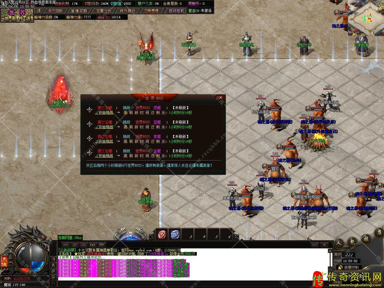 六、此传奇私服网站服务端进入二大陆,比奇新城,后、开始会刷新专属boss,专属boss非常非常强力,前期打不过时先打小怪提升装备!或者提升下宠物,让宠物帮抗可以分担下伤害,专属boss很强、爆出的任何一个专属,属性都非常的厉害,战力提升非常明显,而且装备还保值。