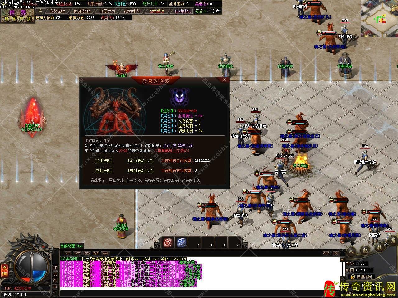 七、此版本前期神魔非常重要!有神魔跟没神魔是2个概念!进去体验过后就知道,强烈推荐优先提升,散人玩家推荐神魔(失败不掉级)-刀速BUFF-冰冻BUFF-兽魂-刀刀切割-黑暗盾牌-称号。 本帖最后由 传奇版本库 于 2025-6-11 16:27 编辑