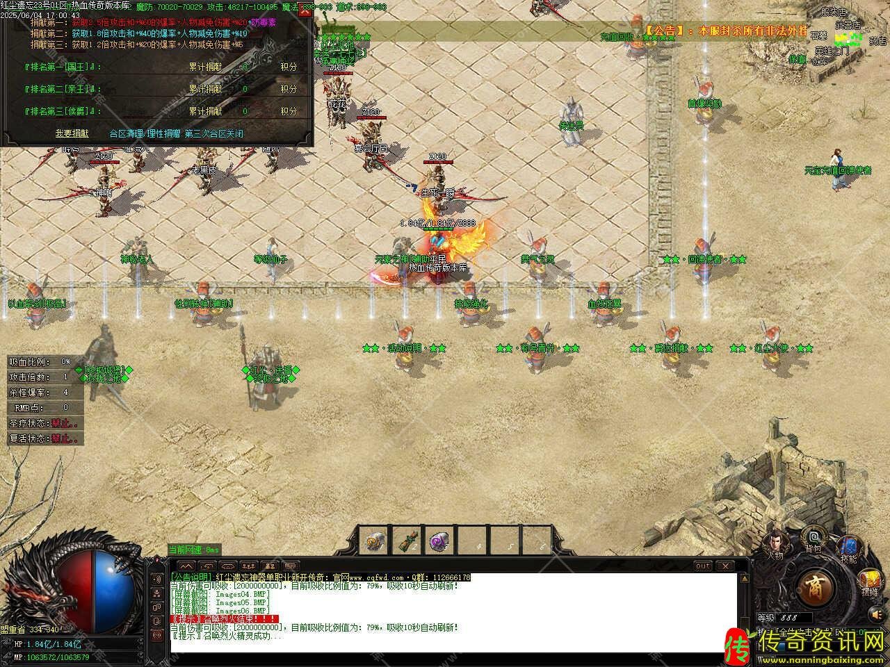 版本介绍:新增全新深渊地图,每30分钟刷新,火云邪神一个小时刷新,爆率超好,每人每天只能进入3次,此地图怪物不触发切割,攻击超级高,防御超级高,没能力不要进,此地图不会爆出大量货币和材料,爆出装备几率很高。