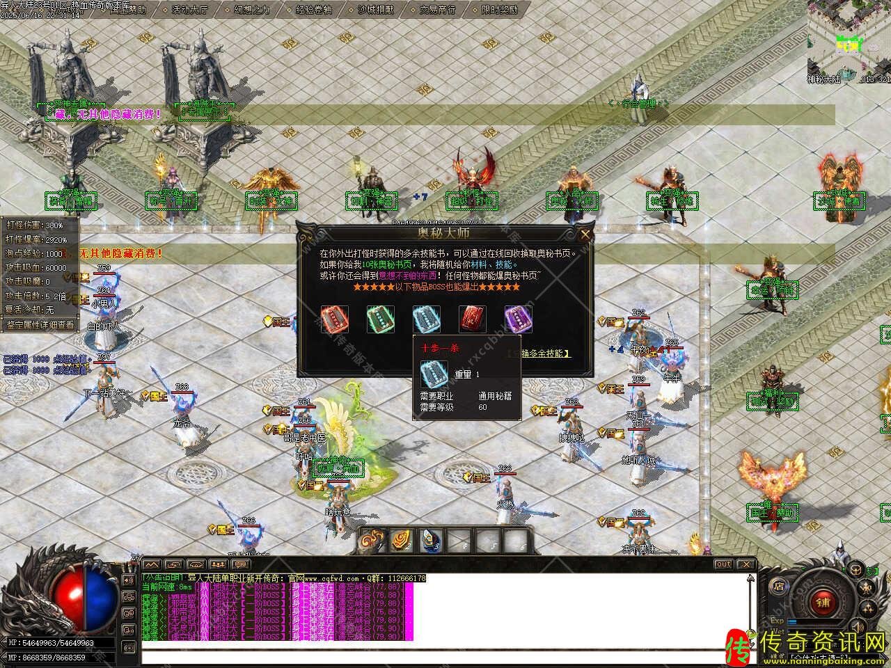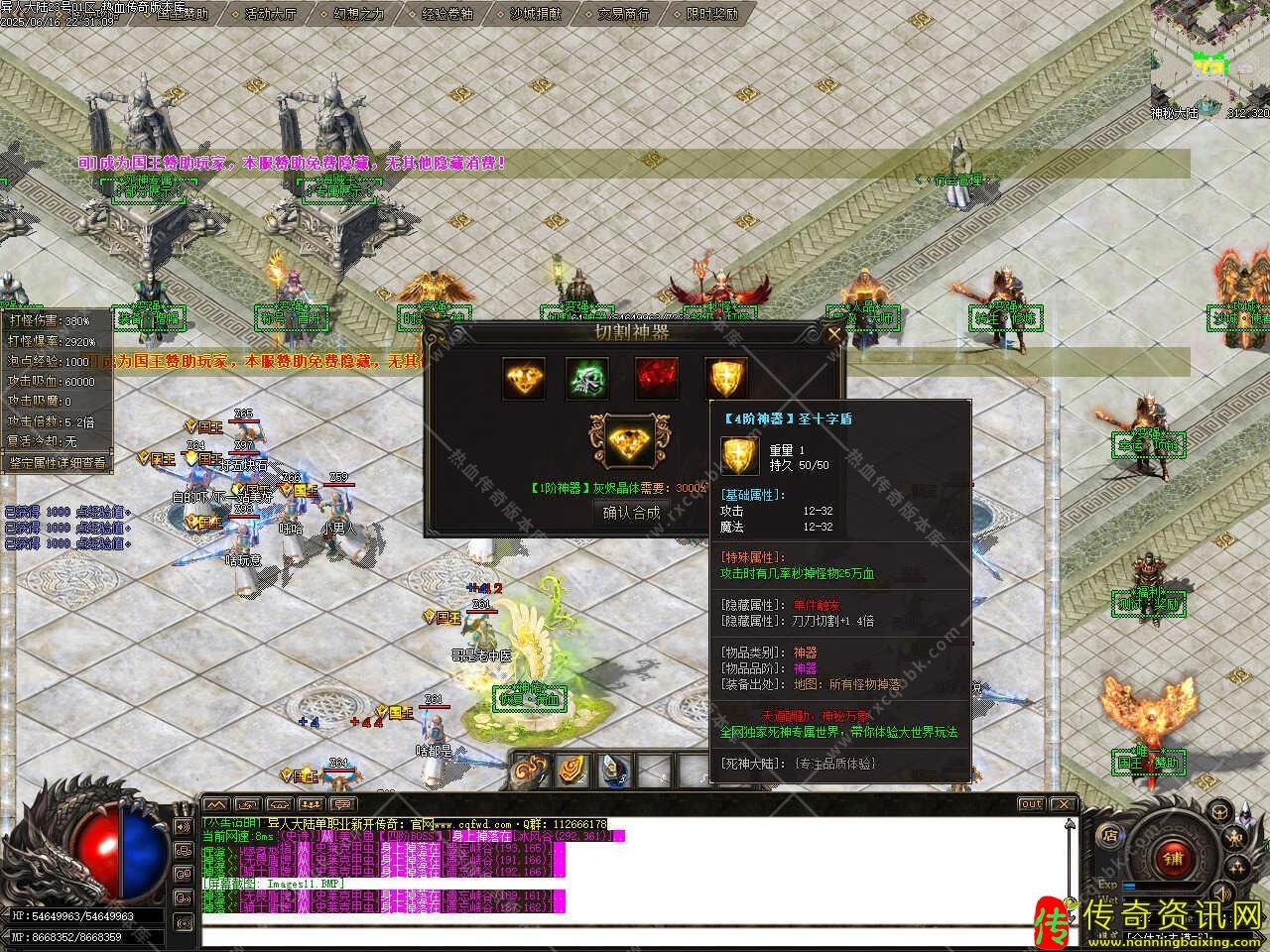 六、添加无尽深渊地图,此地图刷新专属BOSS、超神级BOSS等,分别10分钟、15分钟、20分钟、30分钟、60分钟刷新一次,所有BOSS怪物均有几率爆出终极装备,需要等级到达500级,每次消耗王者碎片58个。