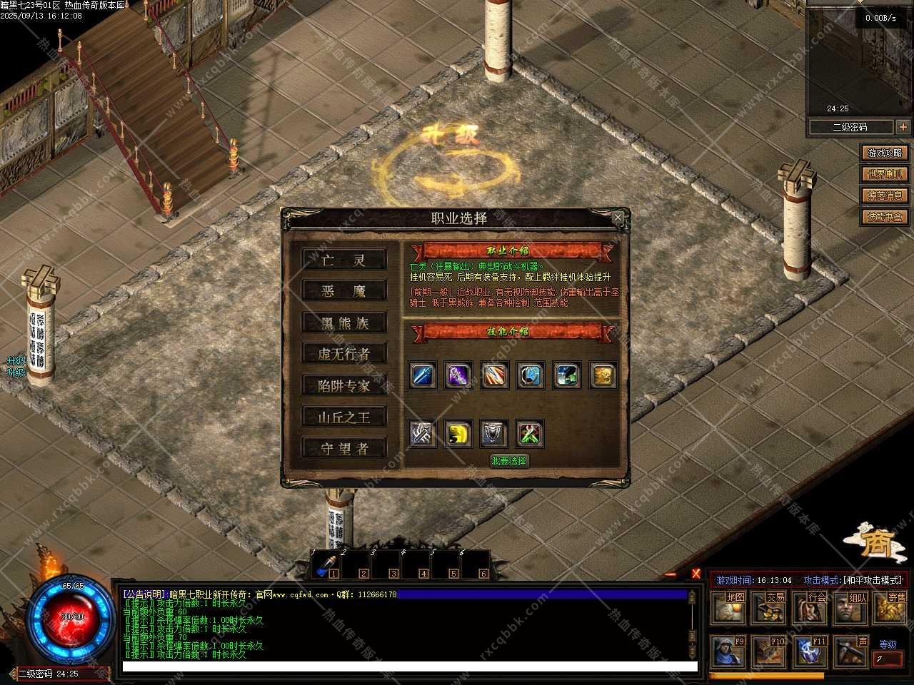 六、添加全新的书页系统,初始技能选职业后系统赠送的4本书,只能通过书页提升等级,升一级需要11张书页,二级要22张书页,依次类推;高级技能只会在BOSS爆出,颜色越红爆率越高,升一级需要1本该技能书、二级要2本该技能书,依次类推。高级技能书抽取一次需要99张书页,回收高级技能书每本可回收30张书页,具体请进版本中查看。