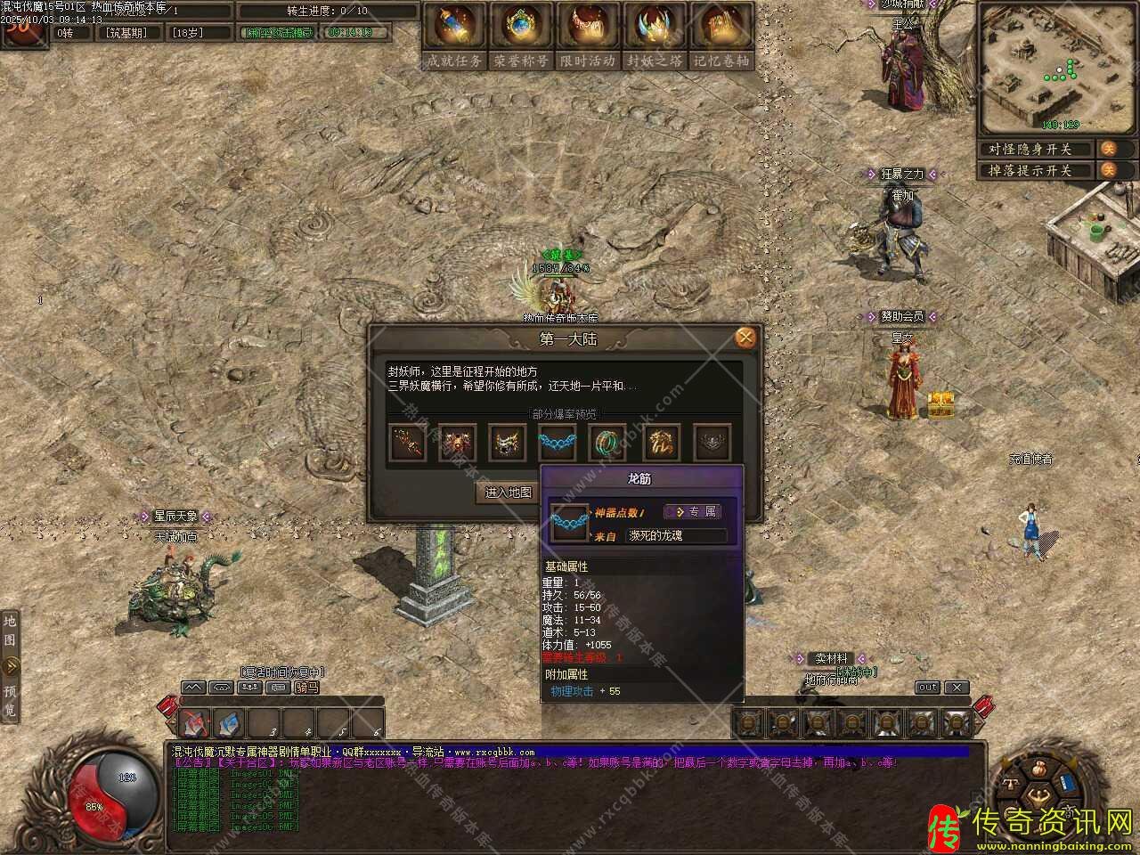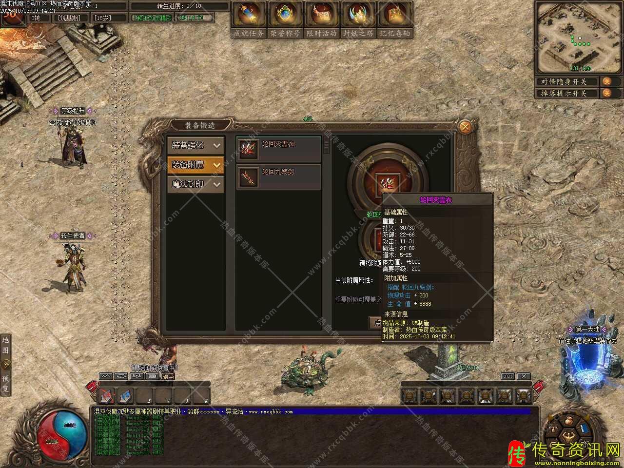 三、新增修罗副本地图,需要您达到一定的转生级别才可以进入副本,在一定时间内打掉BOSS,打掉后您将进阶到高级境界,同时,你的生命值永久提升,随机获得一件专属装备。