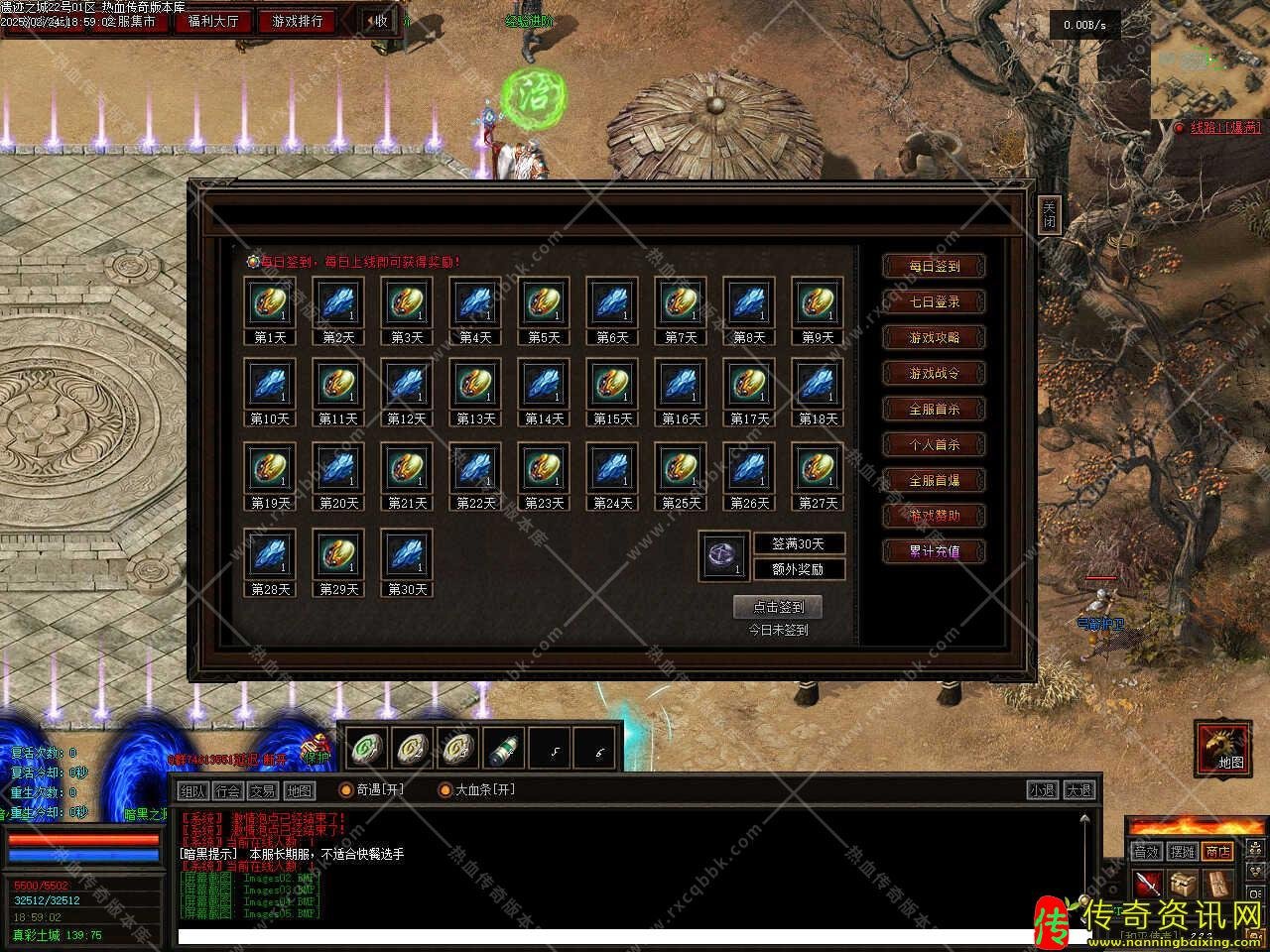 版本介绍:版本采用全新脚本方式制作,画面清爽,地图超多,玩法多样,用心制作的一款传奇版本,新手上线升级去怀旧地图是个不错的选择,本服大量功能在F10按钮处查看。