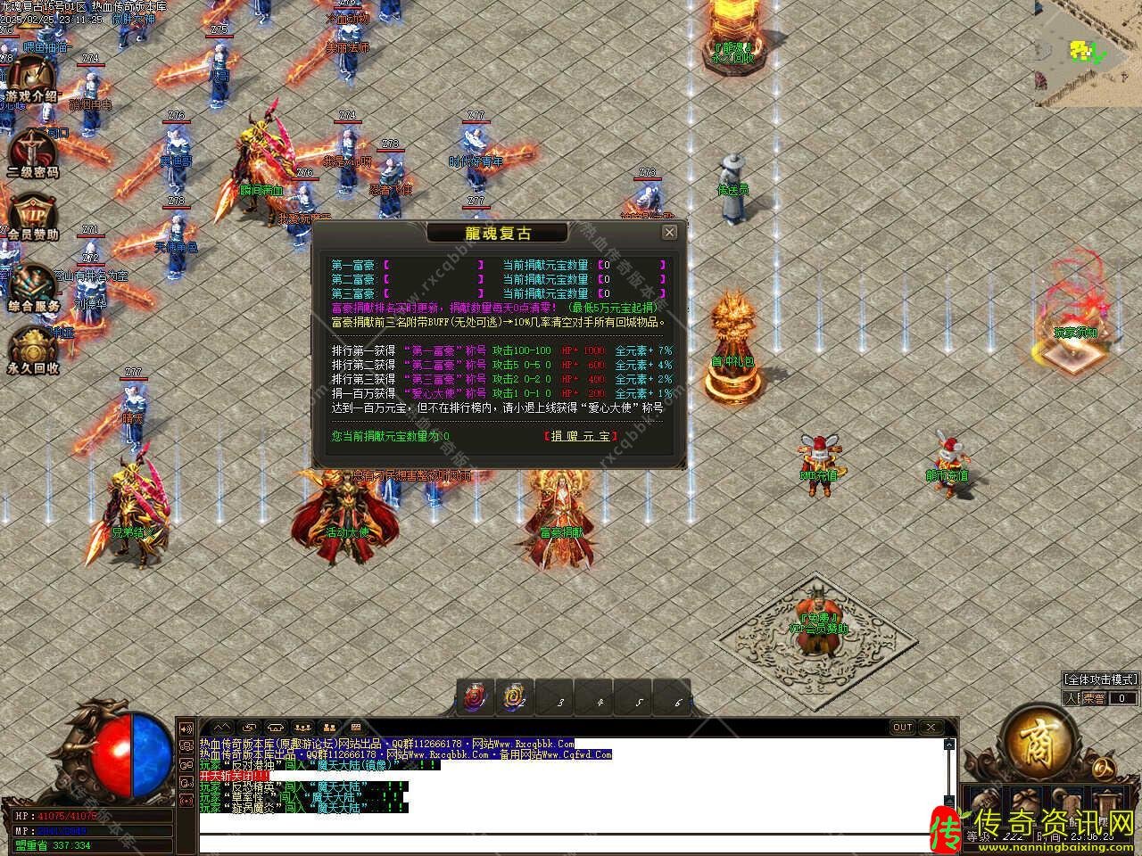 版本介绍:此传奇版本无任何垃圾信息提示,无回收信息提示,还原一个干净的聊天框,装备新颖复古,回味记忆中的那种传奇味道。