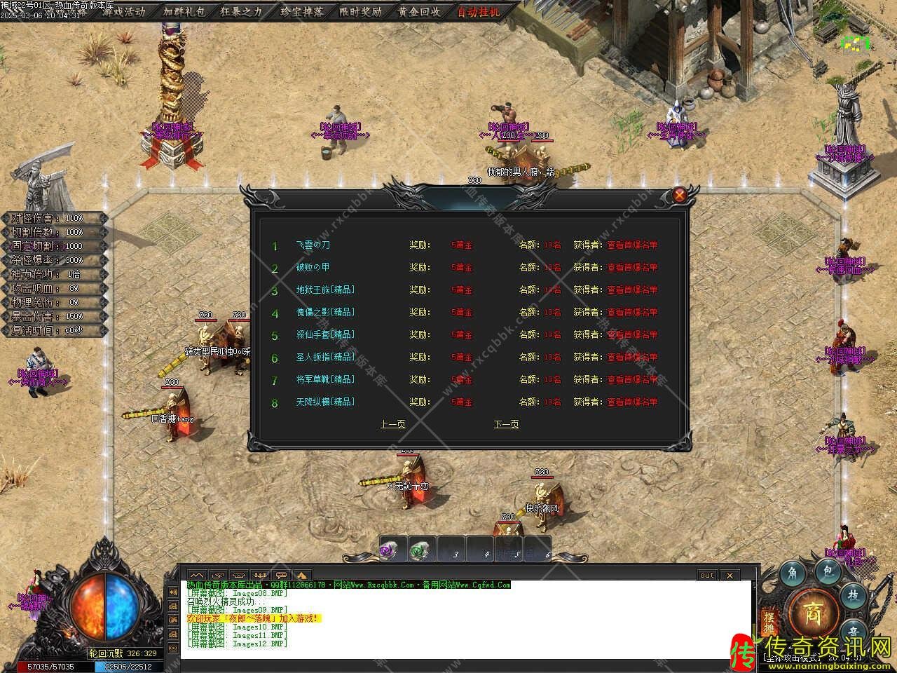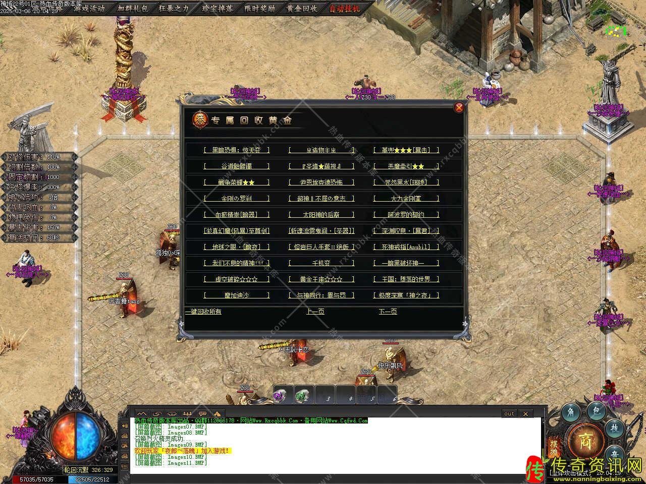 版本介绍:上线后先领回馈,沙捐和狂暴 ,然后把定身、复活做到8级,左下角把锦鲤赐福点了,转生下2大地图。在二大地图海角村把回馈礼包领下,没满回馈的可以做面巾, 优先做打野刀 ,称号点了, 做技能生肖,然后去二大地图帝皇城把时空沙漏合下,做时装,做定身复活max 。