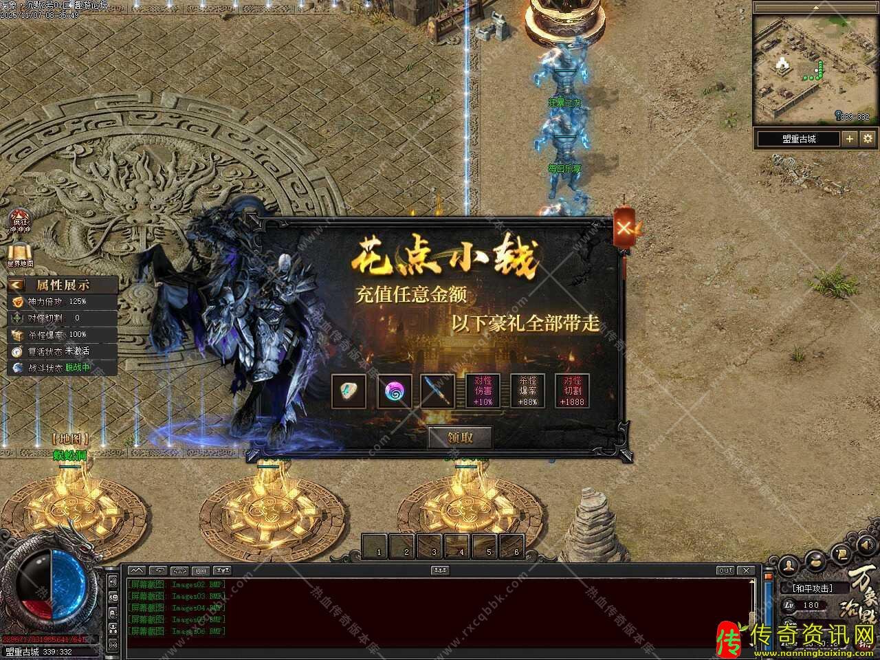 二.新增赞助技能,自动拾取技能有两种自动拾取方式、自主切换,备注:因个别版本爆率过高,或者其他因素导致爆出物品后非常卡,此技能可切换两种自动拾取方式,供大家自行切换选择;赠送自动吸怪技能(每5秒自动执行吸怪技能并获得3秒无敌状态);记录坐标技能,可记录5个坐标点,全服任意飞行,个别特殊地图会有限制使用;综合技能便捷,有上述所有功能,一键搞定方便快捷,增加智能挂机系统,注:以上所有功能均为技能效果,领取后使用技能即可生效。