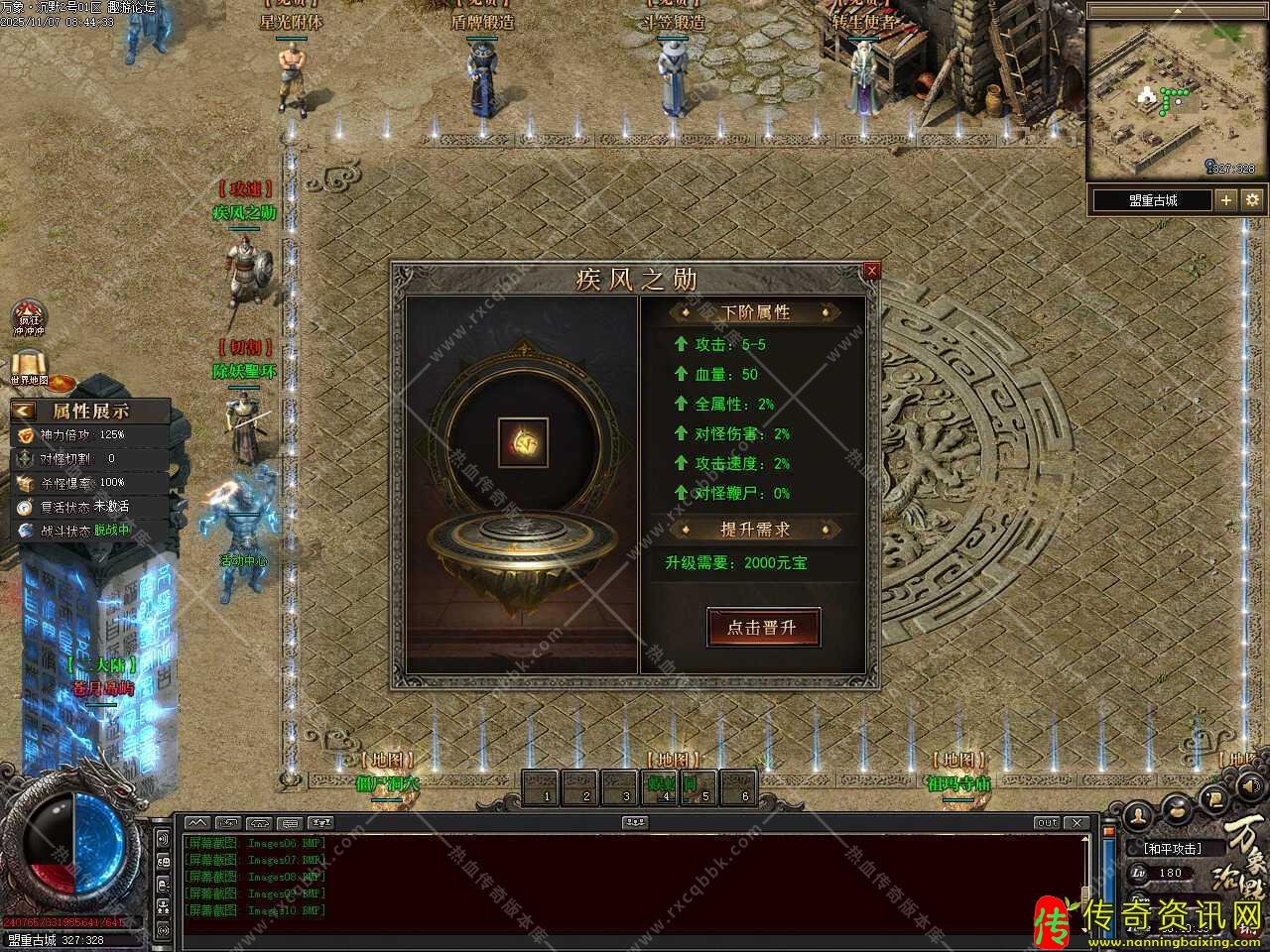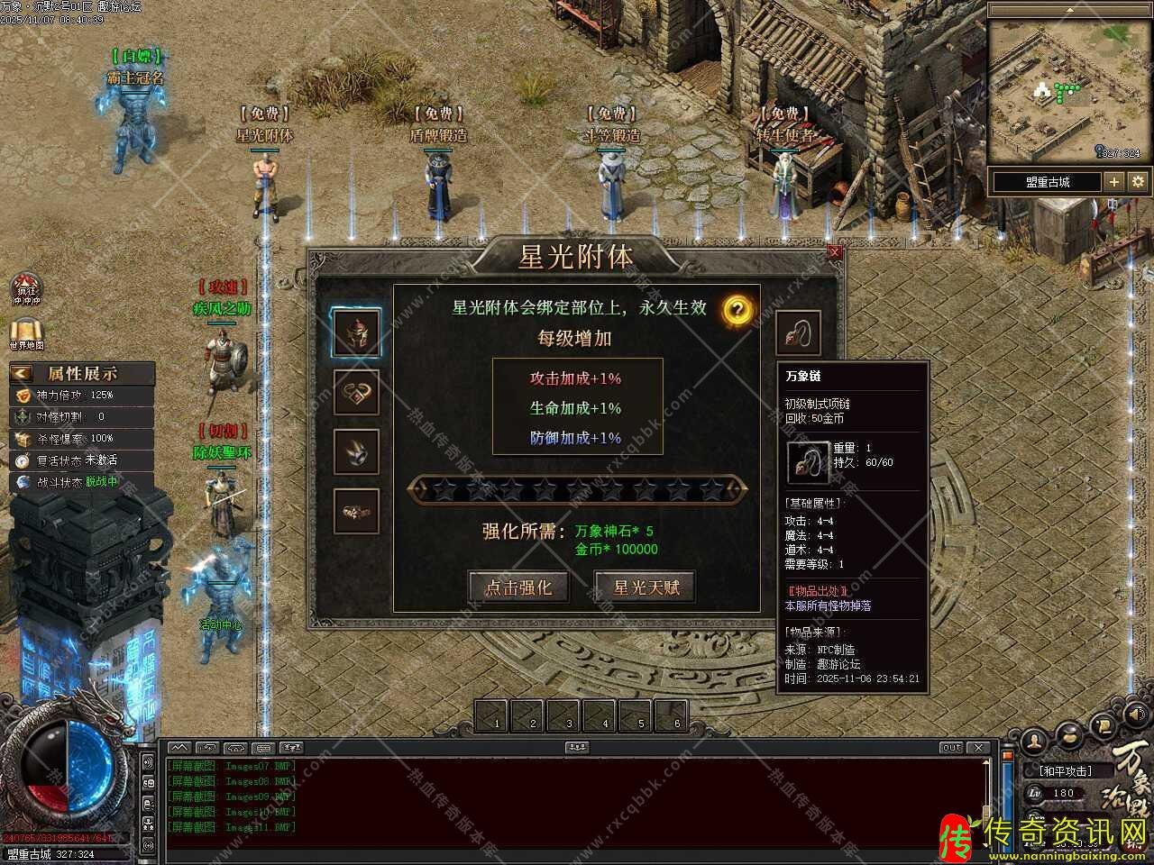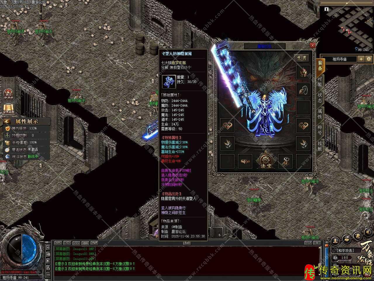 三.添加装备开光功能,每次开光必定成功,全部开光等级达到3级可获得致命一击几率+3%、致命一击伤害+3%;全部开光等级达到6级最终伤害增加+5%、最终伤害减免+5%;全部开光等级达到9级,同时角色等级达到220级后,人物等级+1,更多玩法请自行体验。