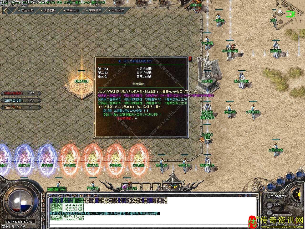 二、本服游戏比例为1比10,建议玩法师,天打沙巴克之后转战士,要会法师的继续玩法师,土豪玩家开好赞助沙捐狂暴之后,合成5级血石,然后捡10个书页,圣魔戒指,换流星火雨,有了这个技能基本怪都可以打了,之后强化流星火雨。