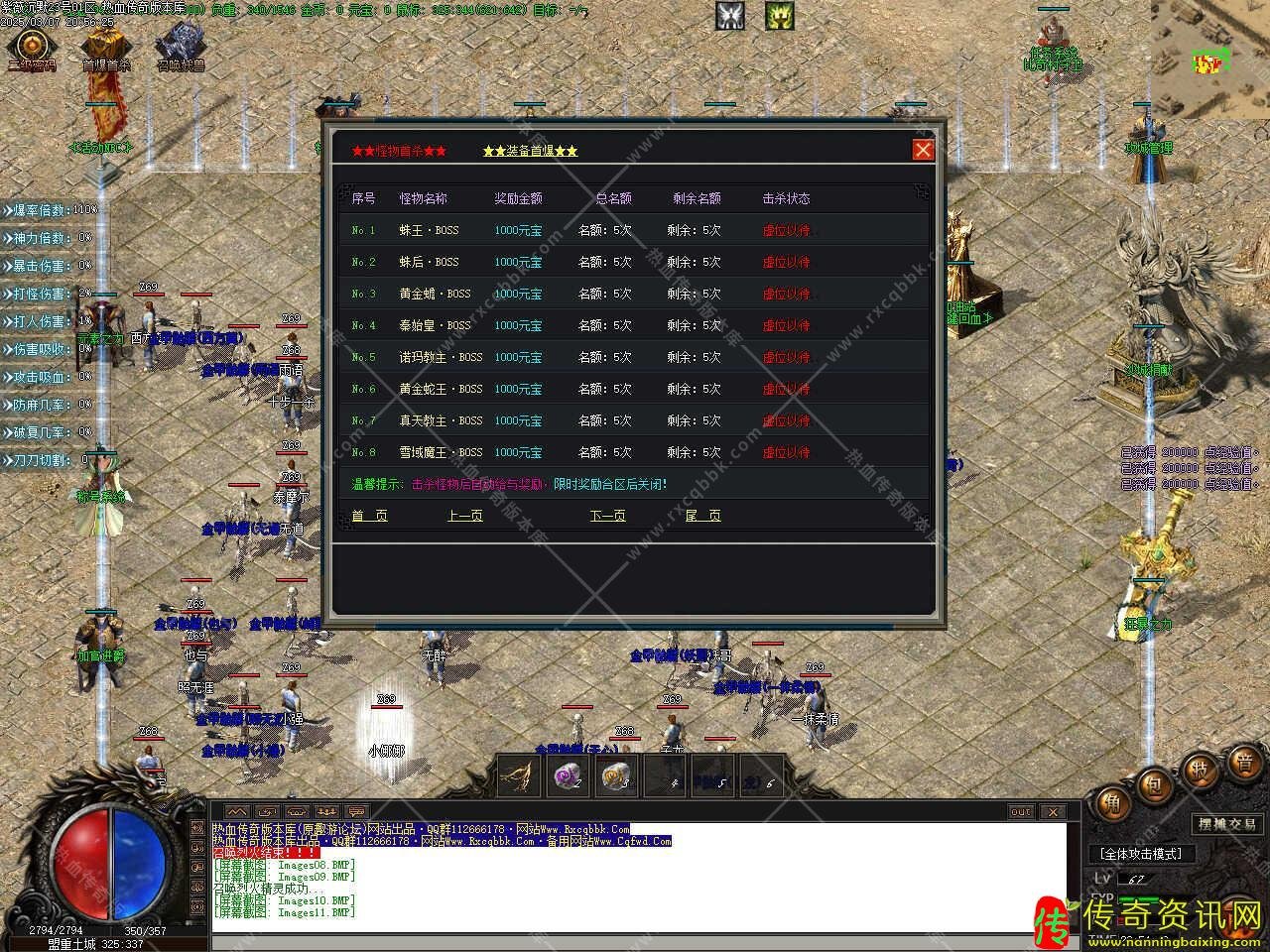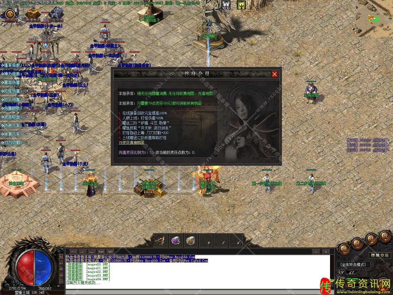 版本介绍:本服元宝完全靠打,无充值,2大地图地图怪物爆出积分可升级特殊装备。