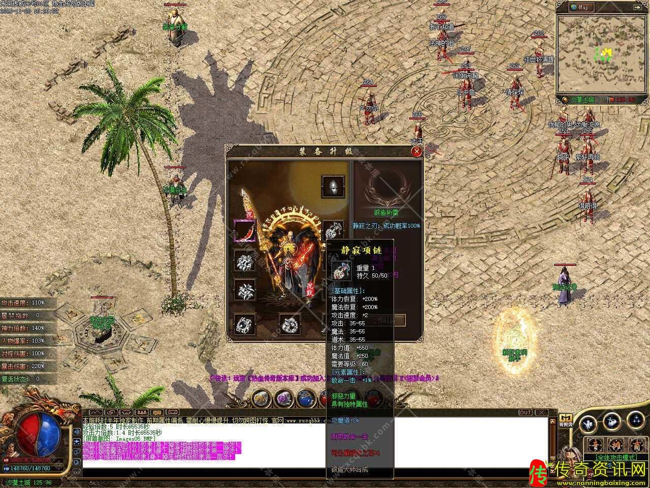 三.狂风戒指和项链可以合成,狂风戒指攻速加+2、攻25-25、魔法25-25、道术25-25,体力恢复增加100%,消耗狂风项链*3+狂风戒指*3+金条*1即可。
