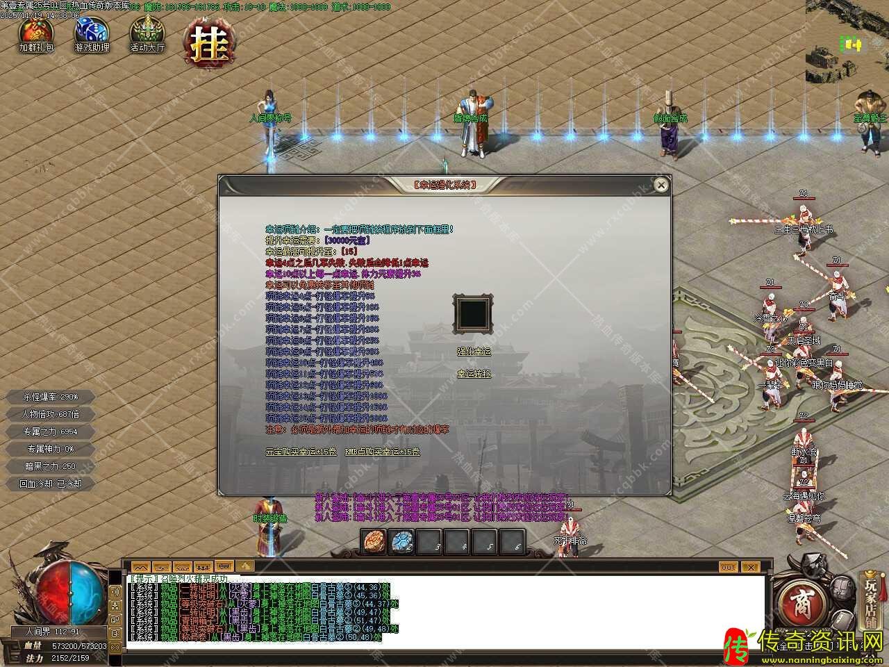 第壹专属单职业热血传奇私服版本带假人系统-G热血传奇私服OM引擎 admin 2026年01月03日 09:50 17 0 一.此热血传奇私服服务端属于专属单职业版本,补丁大小6.05GB,PAK补丁全部一次加密,测试客户端为17周年纯净客户端,游戏兑换码是888888,版本带有假人功能和神盾单机插件,自动开启了大背包。 二.新增天赋提升功能,攻击,暴击,体力,防御达到20级后可领取五毒术,每次强化需要太初碎片10个,同时还需要元宝50000个,每次强化成功几率30%,失败扣除材料不掉等级,最高可强化至20级。 三.新增幸运强化系统,操作时一定要把项链按程序放到下面框,提升幸运需要30000元宝,幸运最高可提升至15,幸运4点之后几率失败,失败后会降低1点幸运,幸运10点以上每一点幸运,体力元素提升3%, 注意:必须是额外增加幸运的项链才有对应的爆率。 标签: #热血传奇sf #假人 #版本 #引擎 #传奇 #职业 #系统 #热血传奇私服
